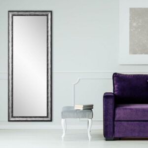 The BrandtWorks Luxury Style Collection Wall Mirror – 26.5W x 71.5H in. is an elegant solution to small rooms and bedrooms without any way to check out your outfit. This oversized mirror is made from glass and engineered wood. The frame is delicately curved and finished in a metallic pewter with spattered textures. This luxurious mirror goes well with both glam and minimalistic décor. All the necessary hanging hardware is included, so you can get right to the easy installation. No assembly of the mirror itself is required.