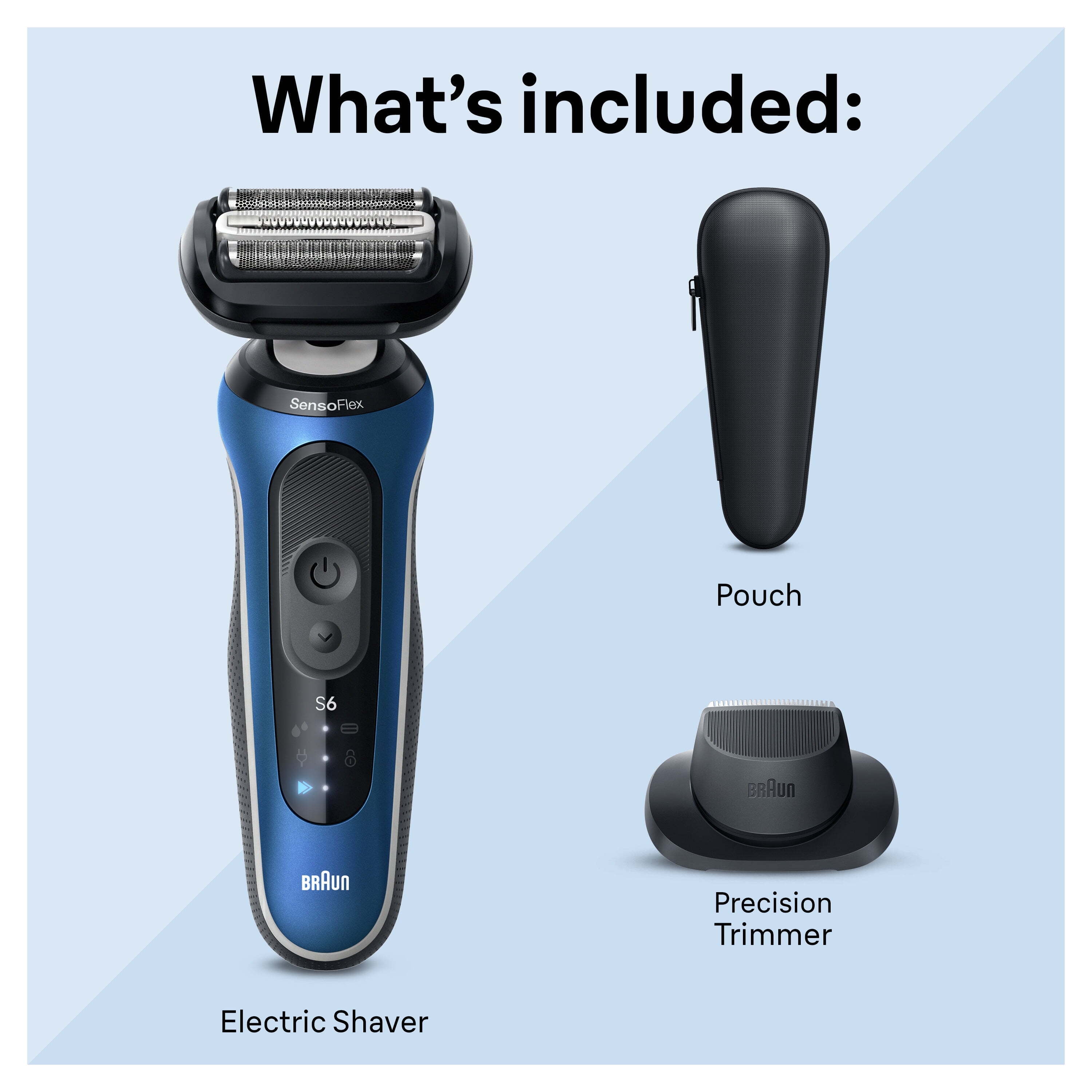GENTLE SHAVE FASTER*: Braun Series 6 Shaver: for a gentle shave, faster than ever before. Dermatologically tested, now with Sensitive SkinGuard (*vs previous Braun Series 6) MINIMIZE PRESSURE ON THE SKIN. The SensoFlex Shaving Head minimizes pressure on the skin for closeness even on sensitive skin 2 SHAVE MODES: now with Gentle mode and Turbo mode for an extra fast shave with up to 28.5% more cutting actions (vs Gentle mode) per second BUILT TO LAST: Engineered in Germany, Wet & Dry use, up to 50 min Li-Ion battery time INCLUDES: Precision Trimmer EasyClick attachment, and Pouch