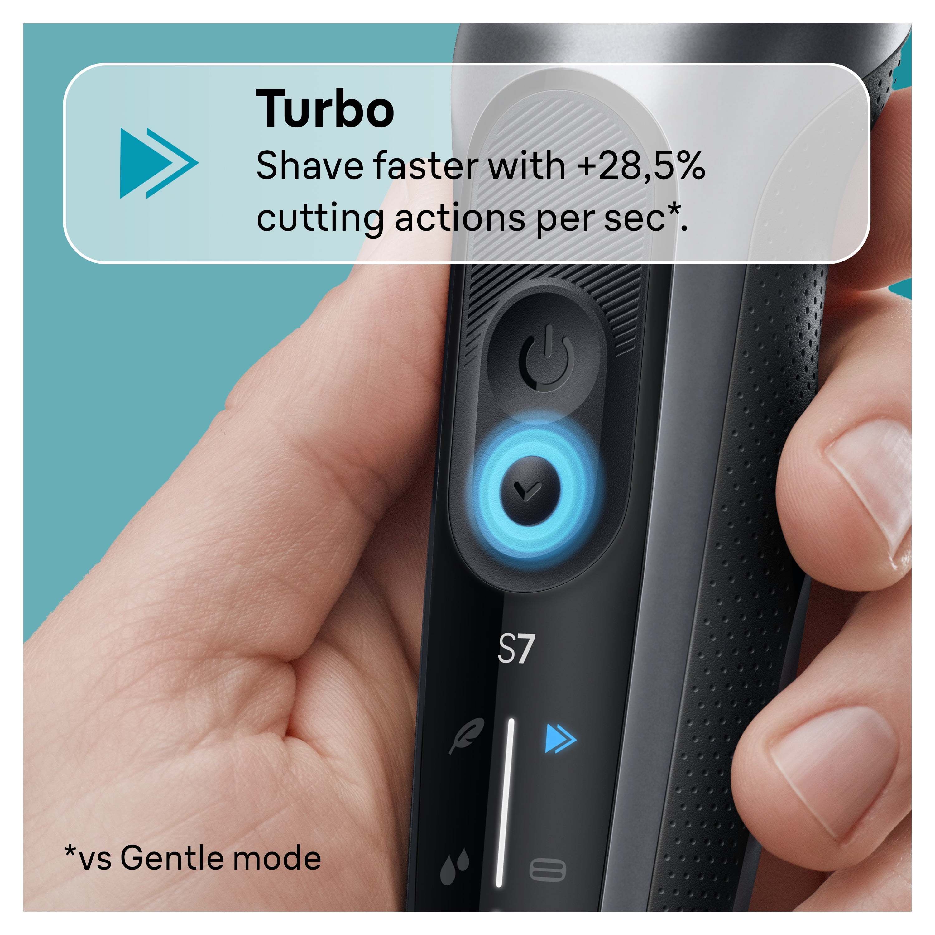 FOR A CLOSE SHAVE, FASTER*: the 360 degrees Flex Head adapts to your contours for an extremely close shave, even in tricky areas (*vs previous Braun Series 7) 3 FLEXIBLE BLADES: The shaver adapts to your unique face contours to deliver a close shave while also protecting your skin 3 SHAVE MODES: Select Turbo mode for an extra fast shave, Gentle mode for a gentle shave on sensitive skin, or Standard mode for a balanced shave. Customize your shave BUILT TO LAST: 100% waterproof so perfect for wet & dry use. With a long-lasting Li-Ion battery, now up to 18% longer with Gentle Mode QUALITY GUARANTEED: this electric shaver’s durable design is made in Germany and built to last INCLUDES: Smartcare Center, Precision Trimmer and Pouch