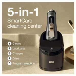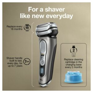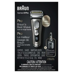 – Braun Series 9 Pro 9465cc Men’s Electric Shaver with Clean & Charge Station, Cleaning Cartridge, Travel Case, Smart Plug and Cleaning Brush
