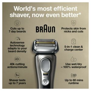 Braun Series 9 Pro 9465cc Rechargeable Wet Dry Men’s Electric Shaver with Clean Station, Noble Metal