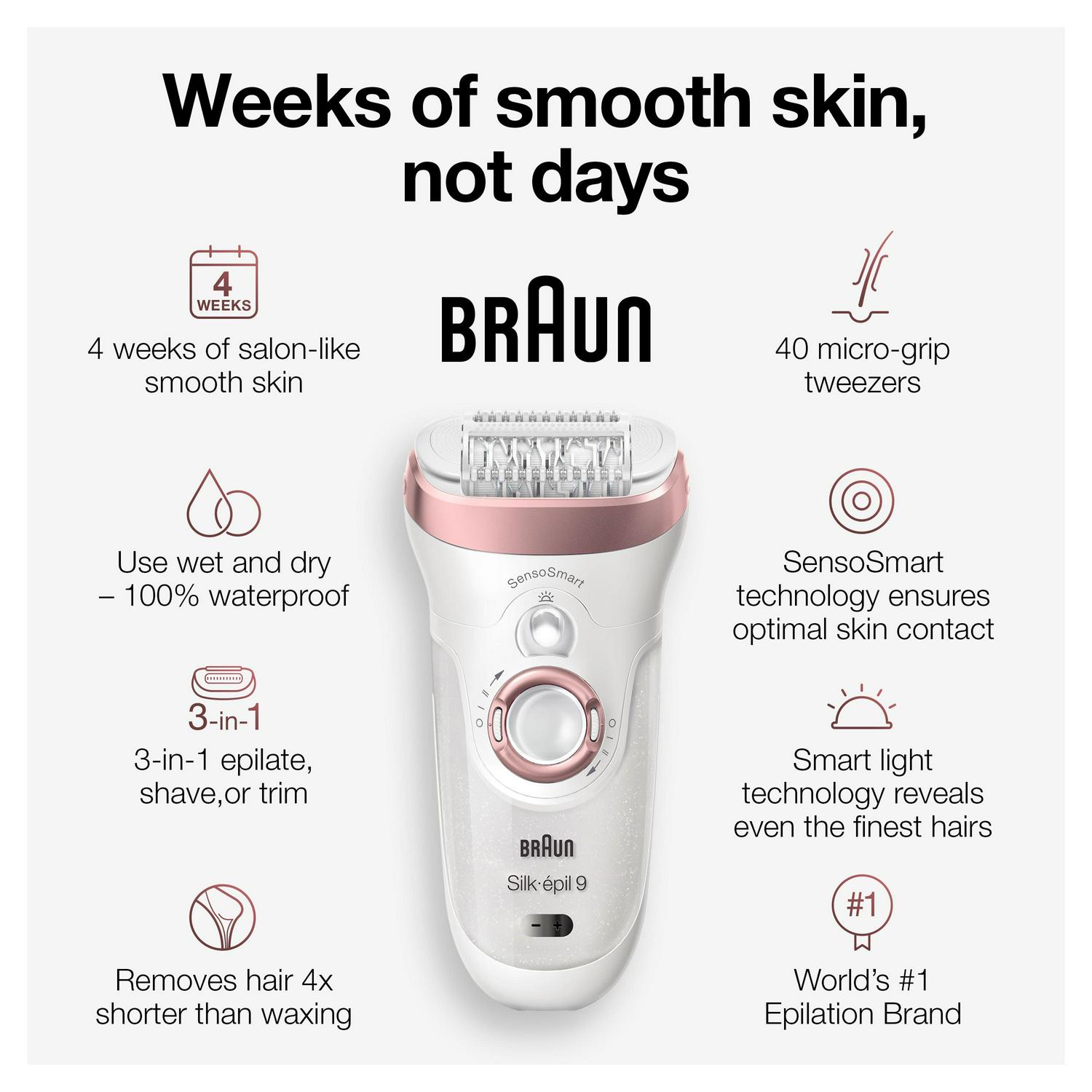 Braun Silk-epil 9 9-870 Epilator for Women for Long-Lasting Hair Removal, White/Bronze