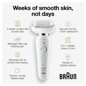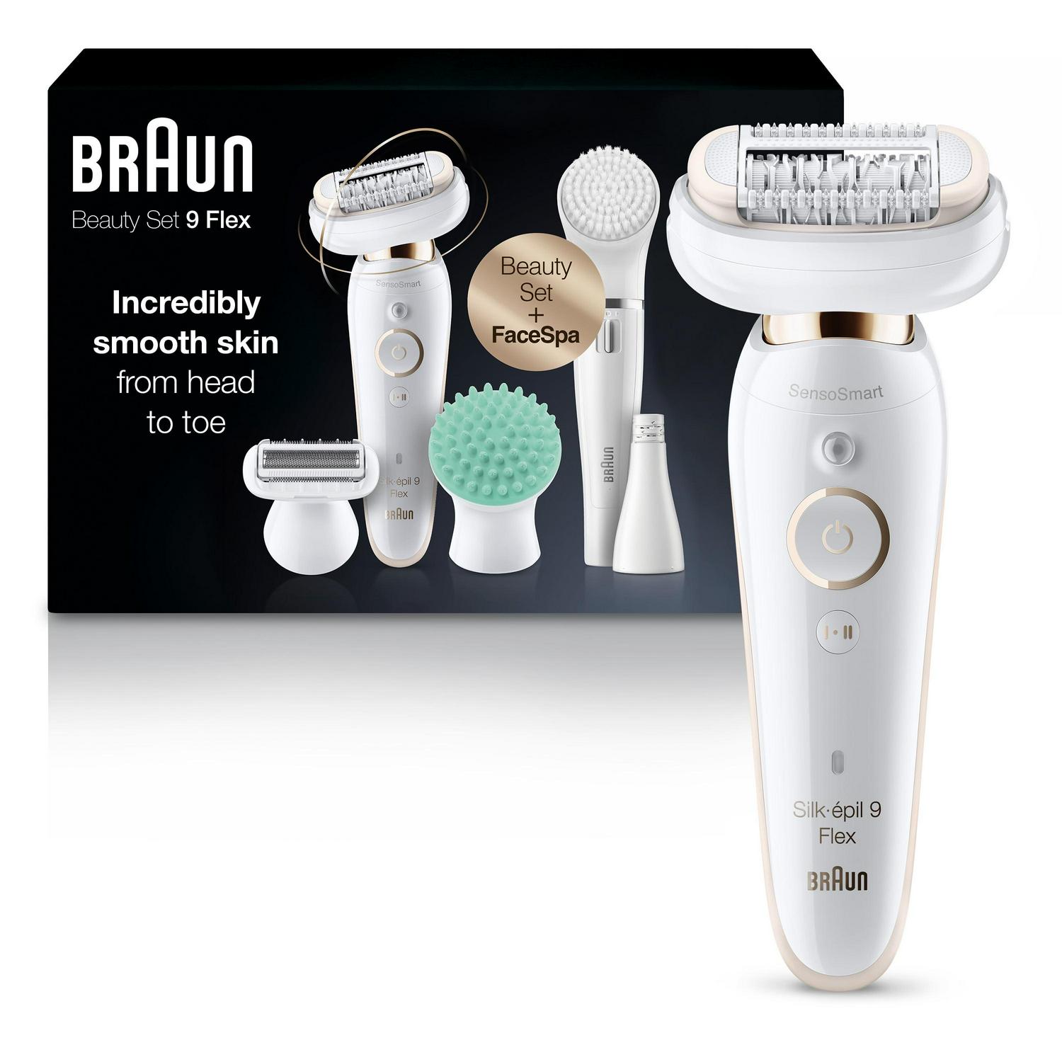 Braun Silk-Epil 9 Flex 9-300 Beauty Set, Epilator for Women, White/Gold