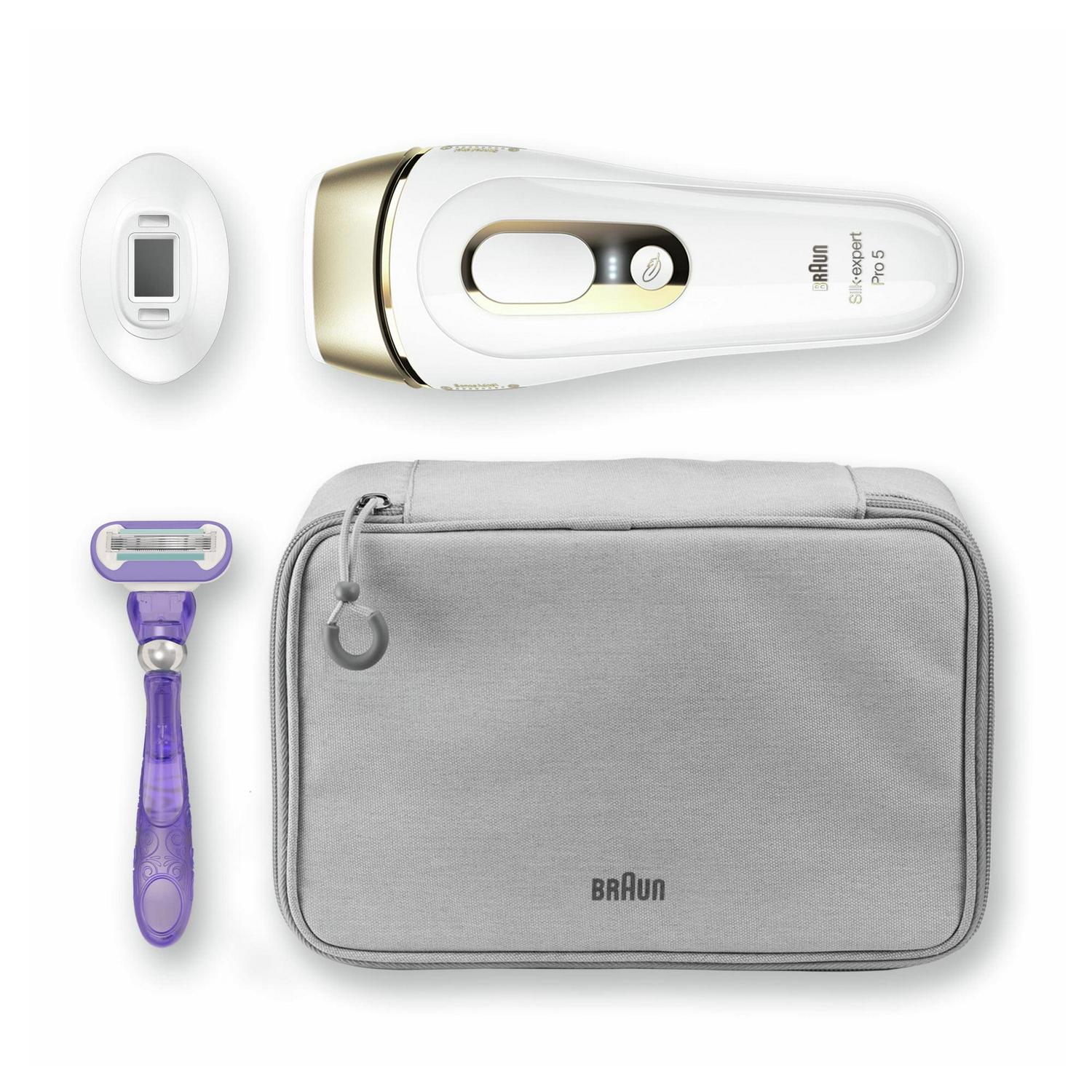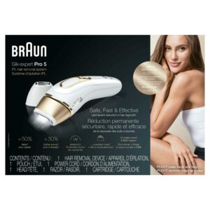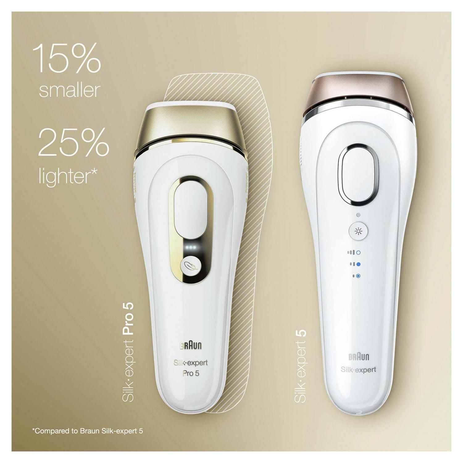 Silk expert Pro is Braun s latest generation IPL. Silk expert Pro 5 is the safest, fastest and most efficient IPL for permanent hair reduction in just 4 weeks. The safest IPL technology, clinically tested and dermatologically accredited as skin safe by an international skin health organization (Skin Health Alliance). It automatically and continuously adapts to your skin tone to ensure optimal balance between efficacy and safety. The fastest IPL, it s 2 times faster than previous Silk expert 5: both lower legs can be treated in less than 5 minutes. It includes a precision head to tackle the smaller areas such as the face, bikini line or underarms. New compact design, 15% smaller and 25% lighter, for easy handling and effortless treatment. 400,000 flashes, 30% more than previous Silk expert 5.