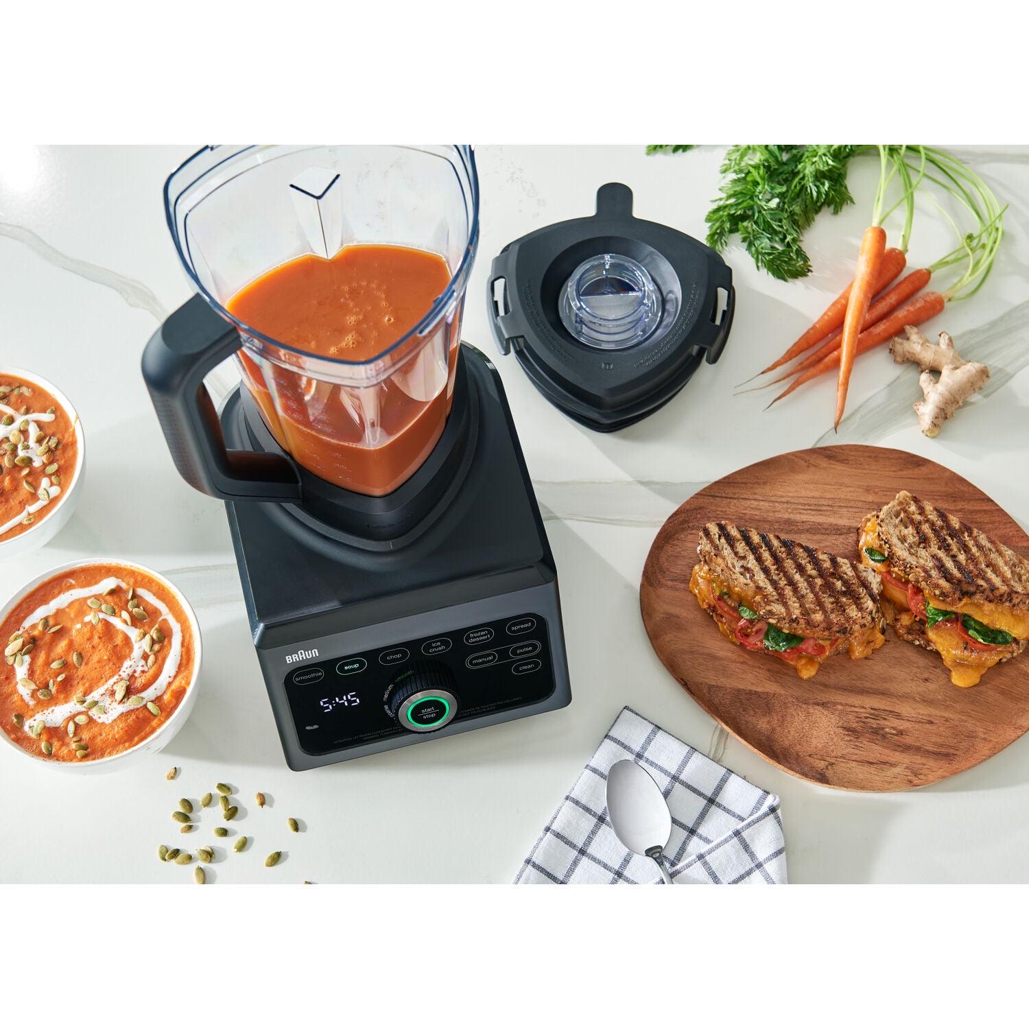 The all-new Braun TriForce power 1600 Watts blender is a powerhouse kitchen performer with superior speed and selection for an effortless personalized blending experience beyond compare. The first-ever power blender to feature a TriAction 68 fl oz technology jug, designed with a triangular shape with the long-lasting, durable material. This sophisticated engineering guarantees 60% finer and 4x faster blending. The seamless intuitive interface makes it easy to quickly master recipes thanks to the iTextureControl functionality. Simply select any one of the 6 automated programs to start, then choose between one of 3 unique texture settings smooth, medium, or coarse – for 18 possible blends as precise as your palate.