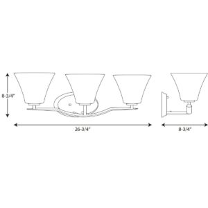 – Measures 26.75-inch width by 8.75-inch height by 8.75-inch (extends from wall)