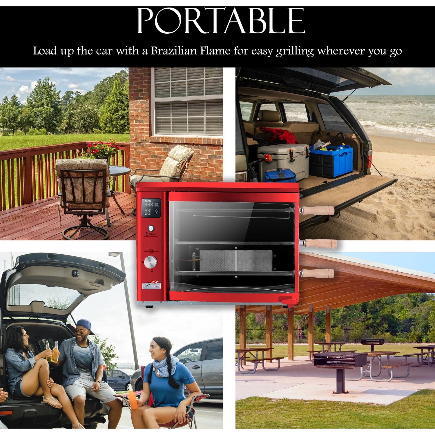 Brazilian Flame Brazilian Gas Rotisserie Grill with 3 Skewers in Red