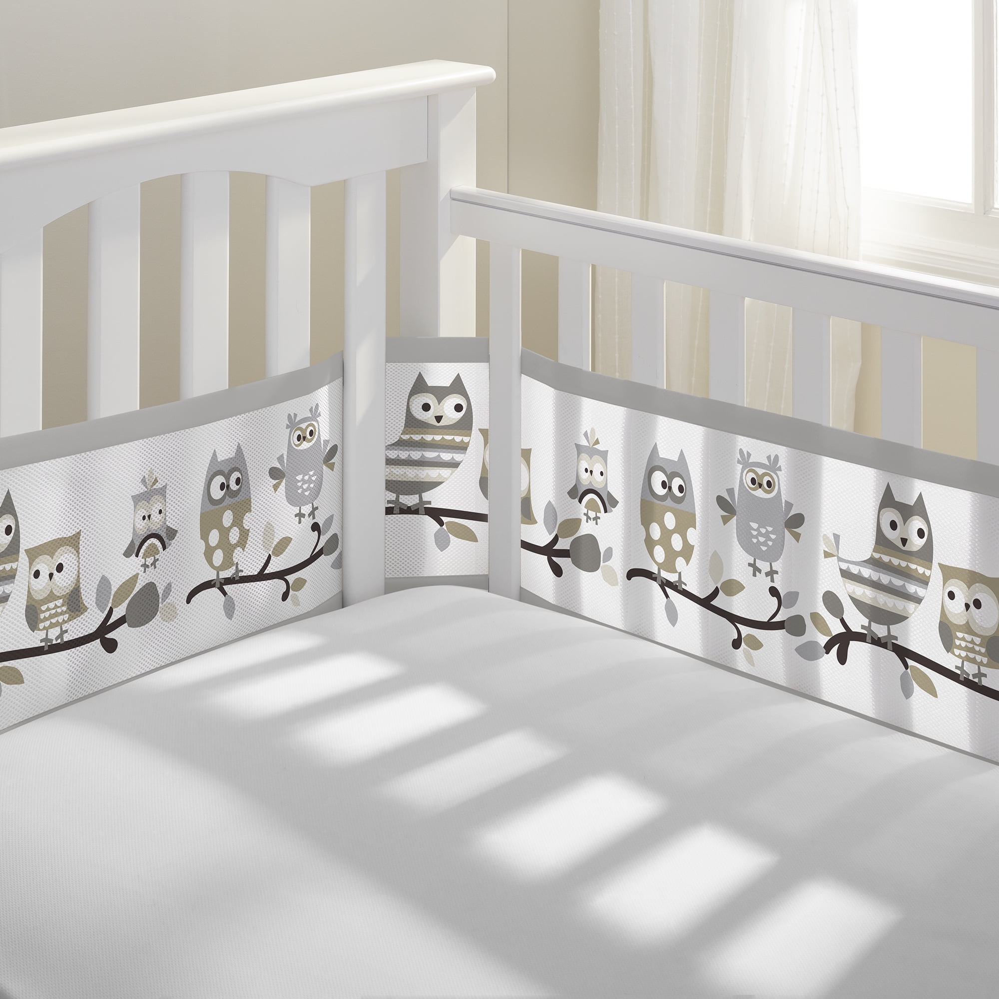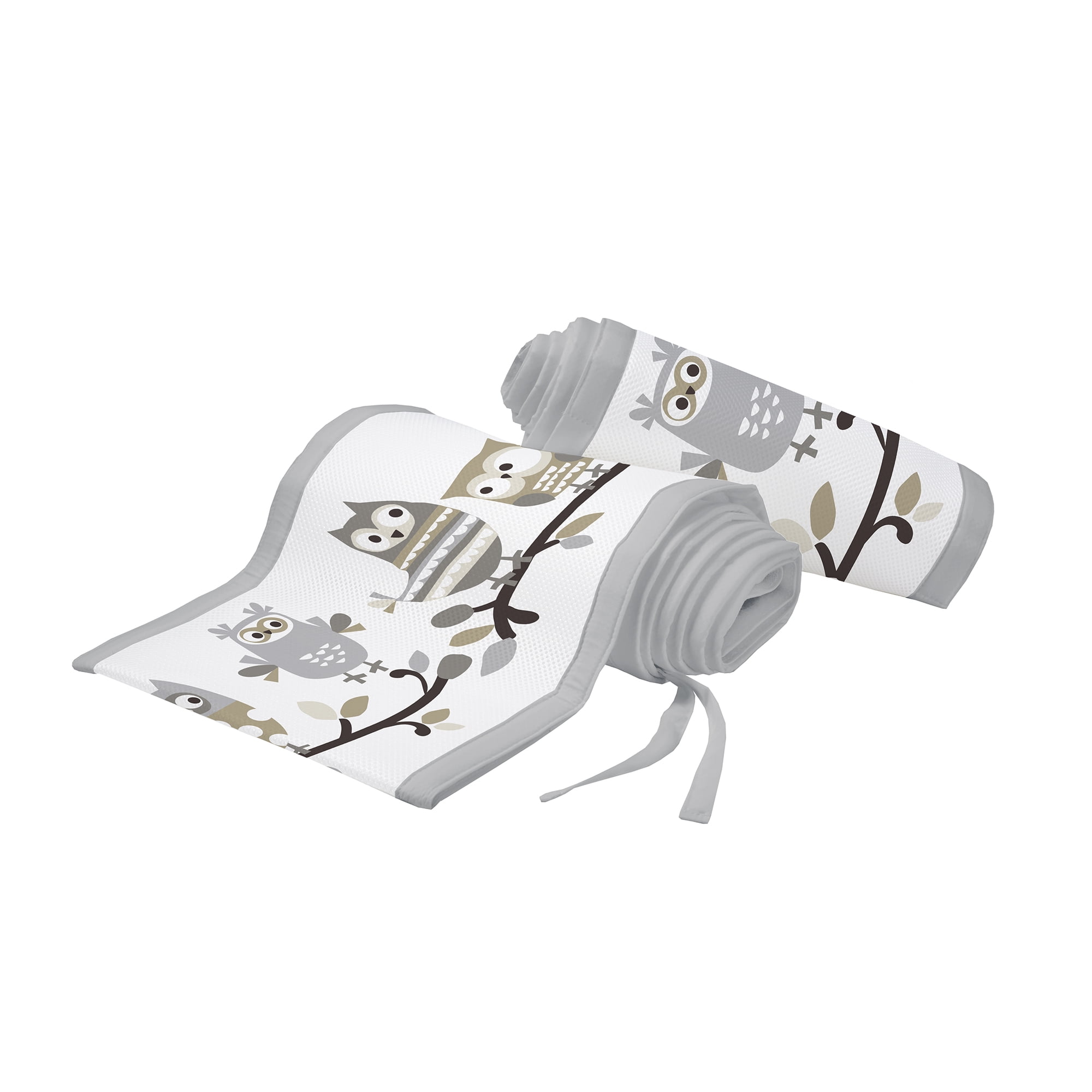 BreathableBaby Breathable Mesh Crib Liner – Classic Collection – Owl Fun Gray – Fits Full-Size Four-Sided Slatted and Solid Back Cribs – Anti-Bumper