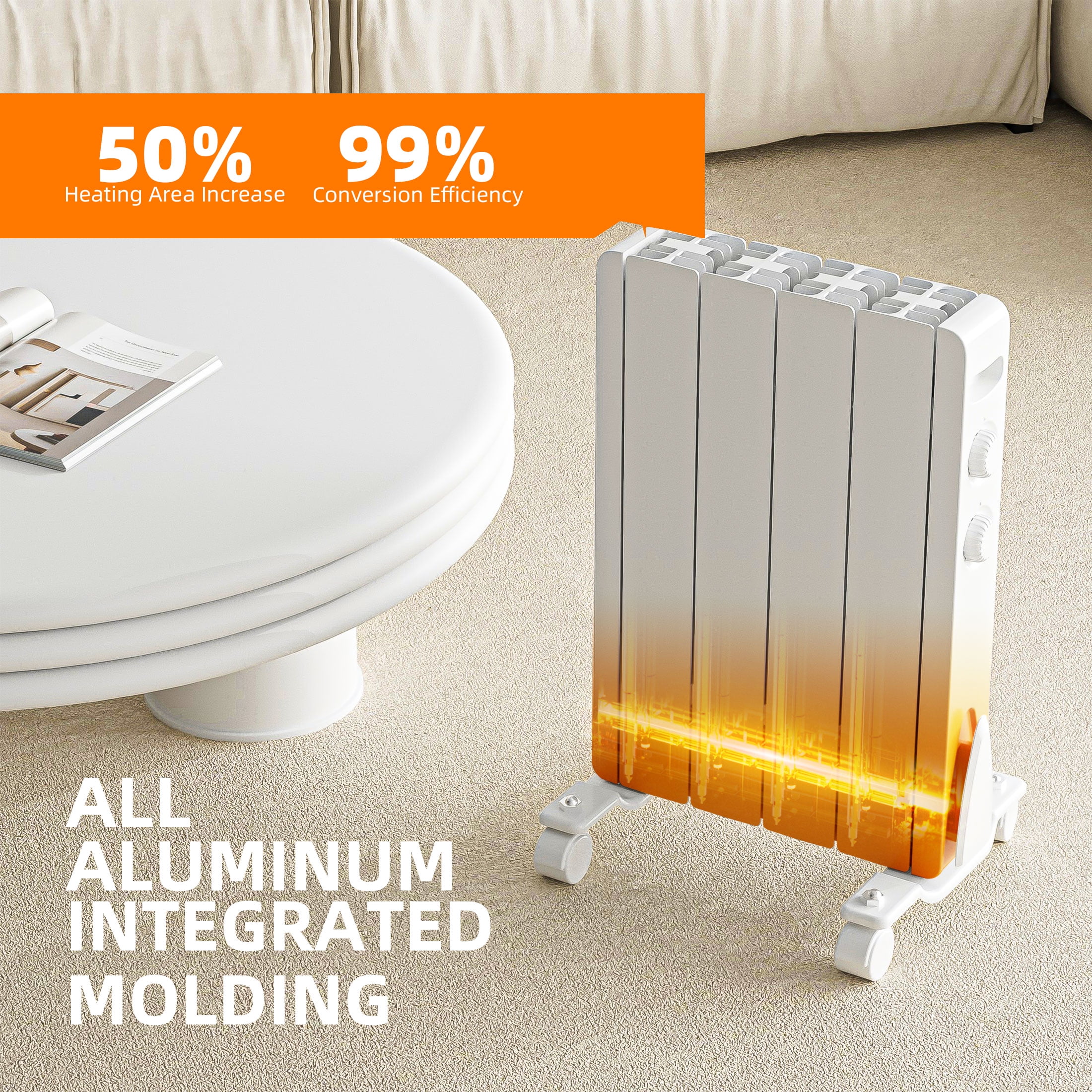 Enjoy comfortable and efficient warmth with the BREEZEHEAT 800W panel heater. This multifunctional radiator is designed with aluminum and prioritizes safety. The full body aluminum characteristics give it a more efficient heat conduction effect than traditional oil heaters. Without increasing in size, it can quickly and efficiently heat up larger spaces. It also has anti tipping and overheating protection functions, as well as a child lock function. Its simple and easy to understand control allows you to easily adjust the thermostat, set a 24-hour timer, and control the temperature through simple knob operation. This space heater is compact and quiet, effectively heating up to 350 square feet of space without taking up too much space. The BREEZEHEAT panel heater comes with a 30 day return and exchange policy and a 1-year warranty, making it a reliable and stylish solution to meet your indoor heating needs