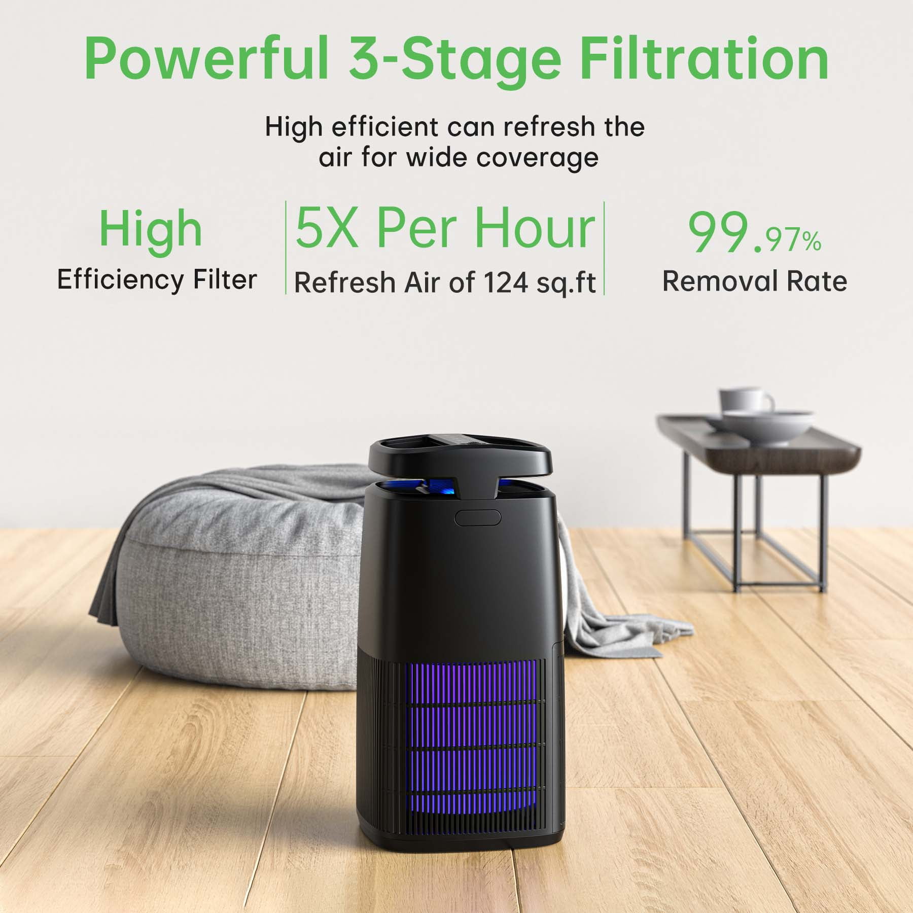 Breezome Air Purifier for Home Large Room,up to 500 Sq ft,UV-C,High-Efficiency Filter,Remove 99.97% Particles such as Pollen Smoke Pet Dander, Air Cleaner for Allergy Asthma