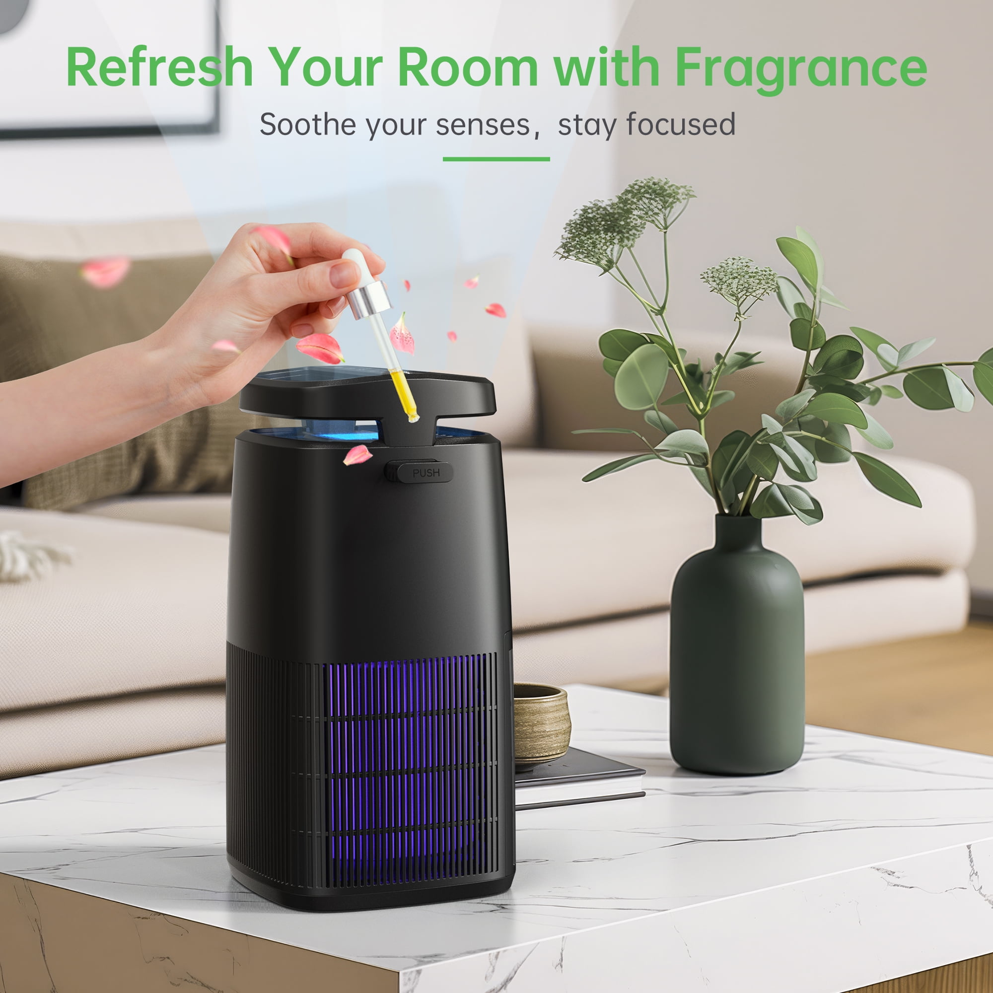 4 Air Purifying Functions in 1 Device: Air Ionizer, HEPA Filter, UV Light and Essential Oil Diffuser – greatly ensure a better air quality and a fresher indoor space (home large room, bedroom, office, kitchen). Built-in UV light further improves the purification effect. 3-step Filtration System: pre-filter layer, H13 HEPA layer and activated carbon layer. The capability to effectively clean 99.97% of airborne particles as small as 0.3 microns is certified by CARB. Activated carbon layer absorbs smoke, VOCs and smell from the air. Essential Oil Diffuser: adding relaxing and personal flavour into the air, together with the Ambient Light could help release pressure. BREEZOME not only pays attention to your physical health, but also cares for your inner peace. Air Ionizer: producing negative ions which could attach to floating allergens (dust, pollen, dander, etc) and weight them down. Adjustable fan wind direction enlarges the coverage of healthier air, especially good for someone long bothered by allergy and asthma. Tips: 1) One filter is inside already and please take it out of the packaging before use; 2) The filter needs to be renewed every three to five months; 3) Official BREEZOME filter replacements for JH02: search item id 1831710976.