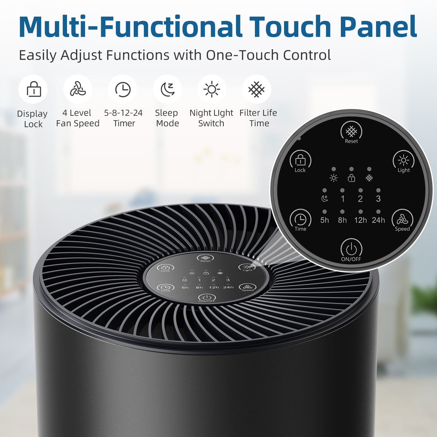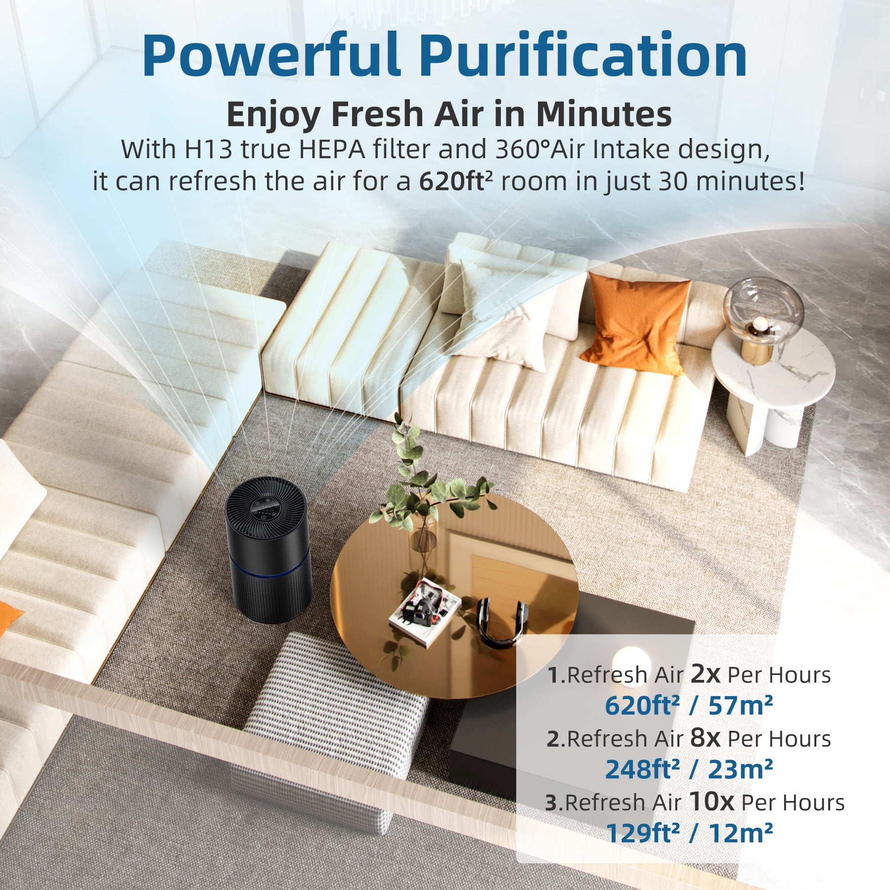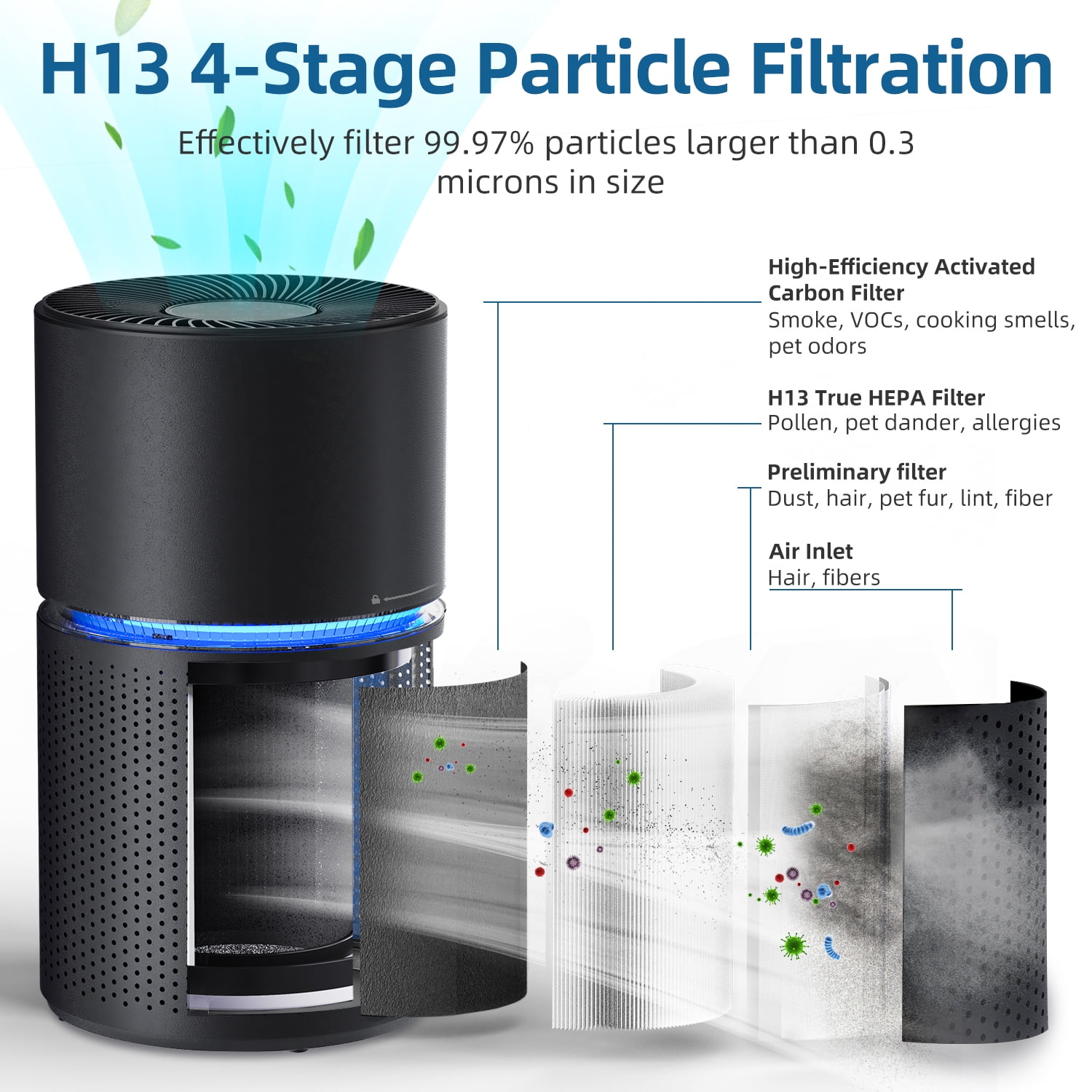 AROEVE Air Purifier, H13 True HEPA Air Filter for Home Large Room up to 1095 Sqft,Black