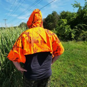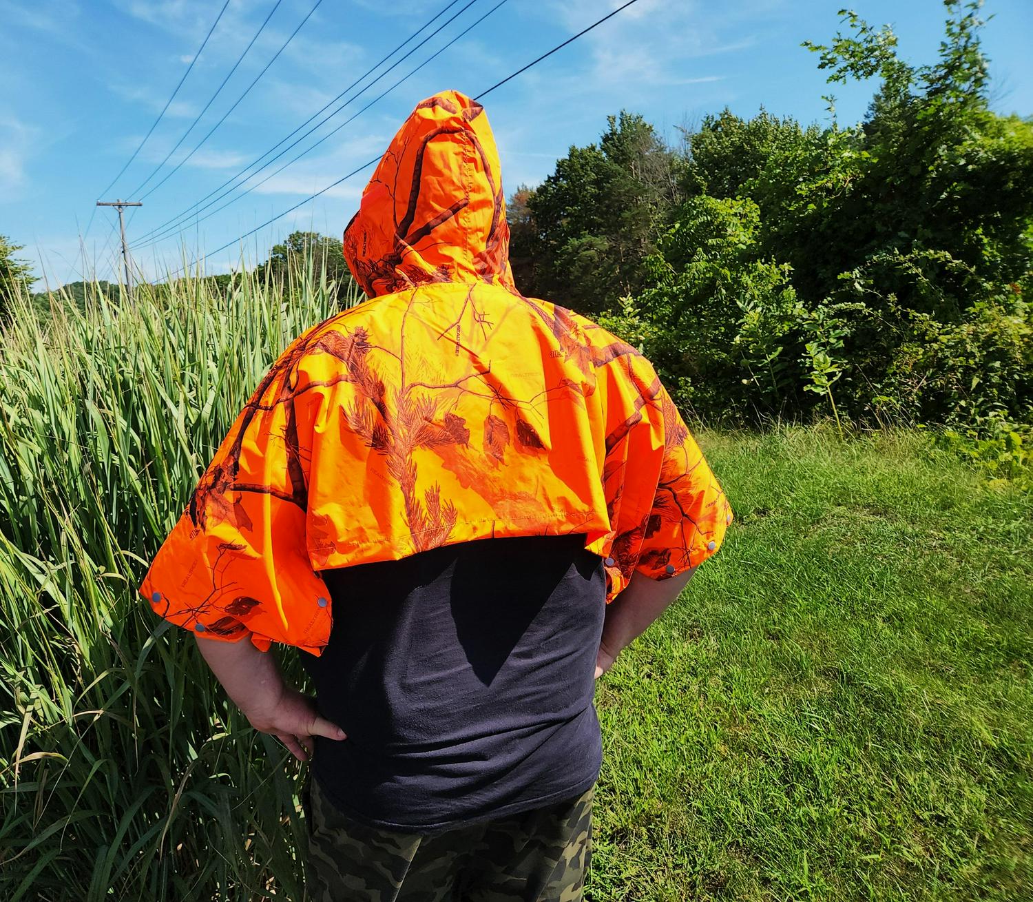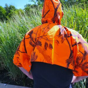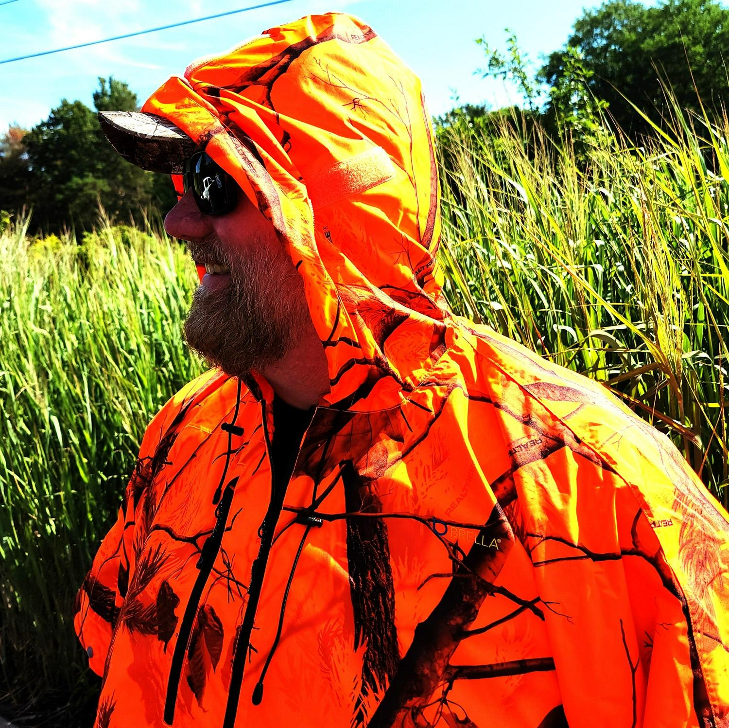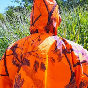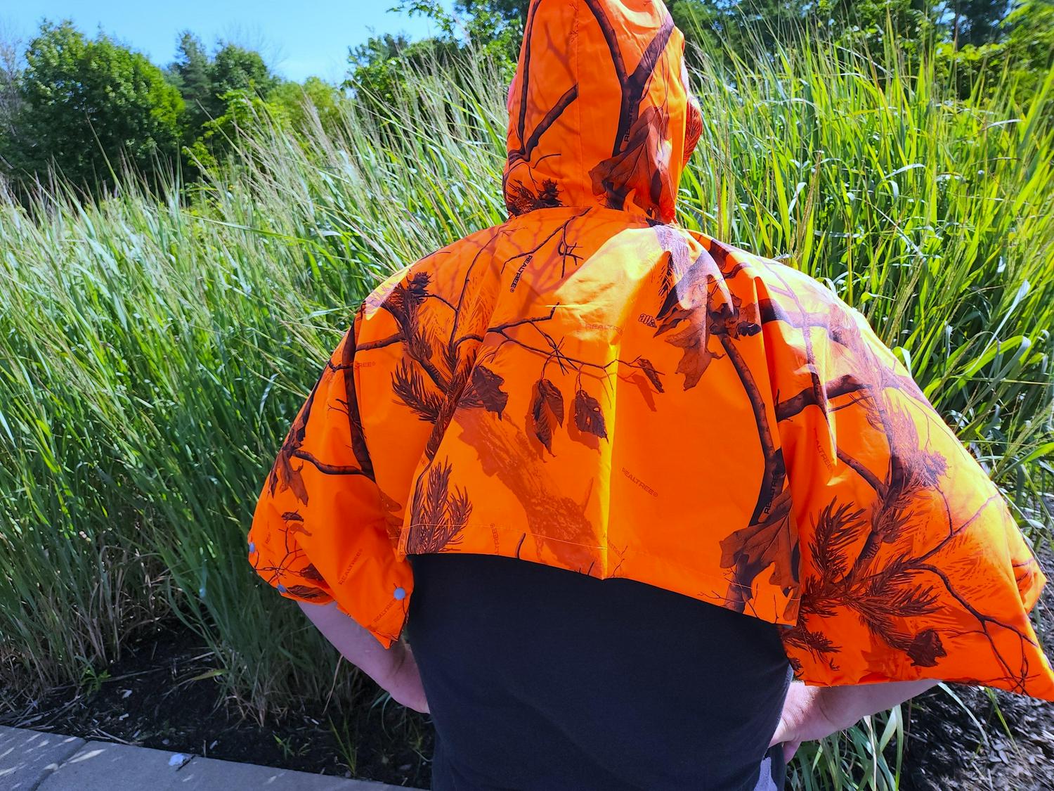 The Brella 2015 unisex rain jacket is designed with a dense 75D polyester fabric that will keep you dry for hours. A patented retractable hood allows for custom peripheral vision, side snaps allow for cross ventilation and bottom snaps allow for a customized shoulder fit. The Brella is great for people that work and play outdoors while keeping users dry, comfortable and protected. Realtree AP Blaze will keep you visible and the half jacket covers your head, neck and shoulders and reduces the risk of hypothermia.