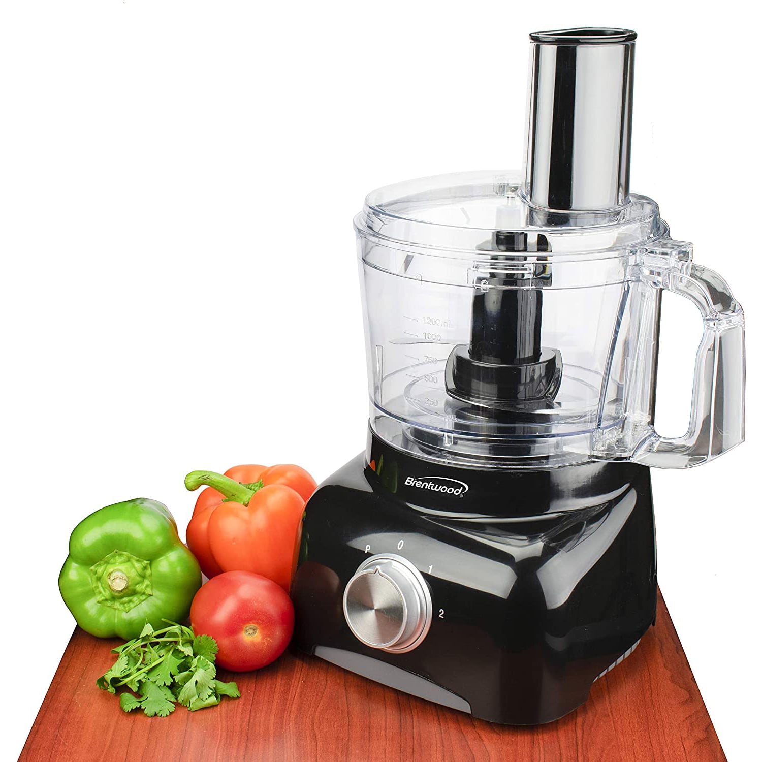Use the powerful 300 watt Brentwood 5 Cup Food Processor in Black to chop, slice, mix, julienne, and emulsify in seconds. Choose between low, high, and pulse speed settings. Non-slip rubber feet keep the food processor secure in place during operation. Includes an S blade, dough blade, cutting disc with interchangeable slicing, grating, and julienne blades. All food contact parts are completely BPA free. Our stylish jet black food processor looks great on every countertop.
