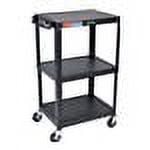 Adjustable Cart adjusts to heights of 26″ 30″ 34″ 38″ and 42″. Black powder paint. (Other premium colors will incur upcharge). Three shelves. Shelf Size: 24″W x 18″D; Middle to Bottom Shelf: 15-1/2″Primary InformationMaterial : Steel AV Furniture Type : Cart Features : 4 inch Casters Recommended Use : TV Overhead Projector VCR Dimensions&MiscellaneousColor : Black Depth : 18 Inch Width : 24 Inch Height : 42 Inch UNSPSC CodeUNSPSC Code : 43211503 – SKU: SY2196464