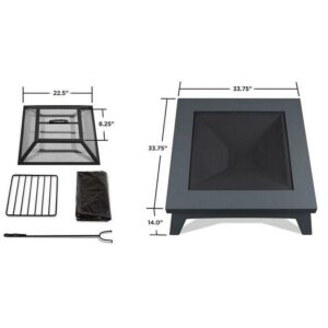 The sleek modern lines of the Breton Wood-Burning Fire pit perfectly frame a roaring fire for an attractive centerpiece to your outdoor space. A beautiful centerpiece for your outdoor living providing warmth and ambiance on a chilly night; the Breton is constructed with heavy gauge formed steel, and durable powder coating. Enjoy your evenings surrounded by friends and family around a real fire burning natural seasoned firewood. The Breton includes a spark screen, log poker and a protective cover for when pit is not in use. Available in gray finish.