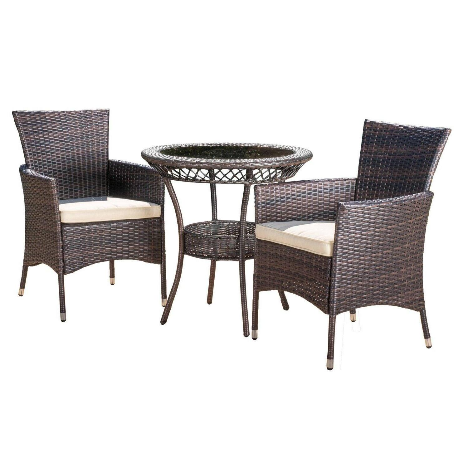 Clementine Outdoor Multibrown Wicker 3pc Bistro Set