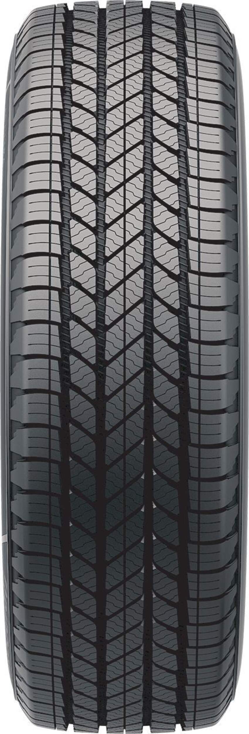 An advanced high-silica compound is molded in a symmetrical pattern to promote better traction in inclement weather and improved noise levels while allowing flexible rotation options to maintain even tread wear.