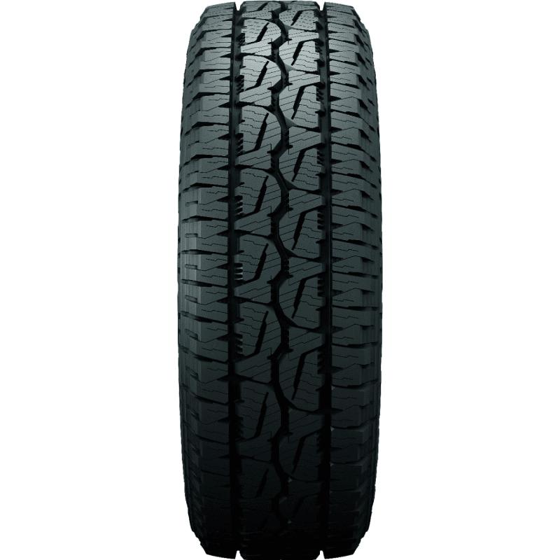 The Dueler A/T REVO 3 offers an extended usability. The staggered shoulder lugs and the grooves stepped design work together to lengthen the tires usability. They optimize the tires contact with the road surface and evenly distribute the driving pressure along the tread area. The equally spread out driving pressure avoids the formation of irregular tread wear on the models surface which provides a longer lasting tread life and usability.
