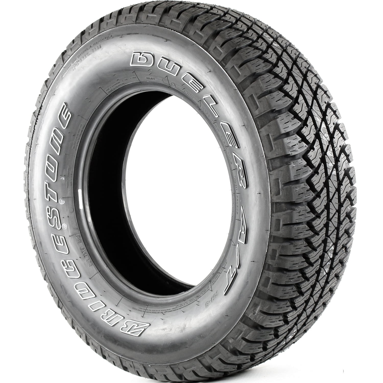 Bridgestone Dueler A/T RH-S OVERVIEW The Bridgestone Dueler A/T RH-S (OE) an all terrain, all season tire manufactured for SUVs and light trucks.This model is the original equipment tire of select vehicles. This model offers excellent all terrain traction. The off-shoulder tread design helps the tire grip the road surface more firmly on all surface conditions. The tire’s all terrain capability is enhanced this way, as it can conquer all uneven, loose or soft terrains. While most all terrain tires are not recommended for use in mud, this model can perform well. It is worth noting, however, that prolonged use on muddy terrain can become dangerous, as the mud packs up in the tread grooves, lowering the model’s grip. This tire is perfect for drivers with diverse needs. It performs well in both on- and -off-road conditions as well, such as dirt or gravel paths. The tire has great all weather traction for grip in dry, wet and winter weather conditions. The tire’s tread compound and design provide extra biting edges in snow and even in mud for a shorter period of time, enhancing the driving safety. As a result the tire is marked with the M+S notation, for its remarkable mud and snow traction. The tire’s safety is further improved as the circumferential and lateral grooves in the tread pattern help eliminate water from below the footprint of the tire and boost its hydroplaning resistance in dangerous situations. The tire was manufactured using the L. L. Carbon, or Long Link Carbon, which on the molecular level creates a chain structure across the tire’s build. The model becomes stronger as a result. Not only does it resist accidental punctures, such as cracking, chipping or tearing, but it also offers a longer lasting tread life. The tread wear rate is slowed down due to its resistance, and the L. L. Carbon distributes the driving pressure equally across the tread surface, preventing uneven wear. As the tire is forced to wear out evenly, it lasts longer and becomes more cost efficient. The Dueler A/T RH-S (OE) offers high speed uniformity and exceptional ride comfort. The CO-CS, Computer Optimized Component System, Technology uses a computer to determine the ideal combination of tread design, casing shape, materials and construction to increase the tire’s performing capability and comfort levels. The tire maintains its shape at high speeds under the driving pressure which improves both the performance and safety of the tire. The tire also offers a comfortable driving experience, as it reduces the road vibrations felt in the cabin of the vehicle. The tire is safer to use and more comfortable as a result. Not all tire sizes are suitable for all vehicle types. Please refer to the item specifications for accurate information about vehicle type fitment for this particular size. Manufacturers recommend changing tires every 10 years. As long as tires are properly stored before they are sold, the year of their manufacture will not shorten their service life.
