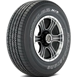 The Bridgestone Dueler H/T 685 is a highway terrain all season tire manufactured for sport utility vehicles and light trucks. Bridgestone offers a 50,000 mile treadwear warranty with this model. The tire offers a safer year round performance. The optimized tread design with the added sipes, the larger road contact patch and the all season tire compound firmly grip the road surface in dry, wet and winter weather. The stronger tire compound does not lose its traction in colder temperatures, while the tread elements keep their firm grip even when driving on snow and ice. The four wide circumferential grooves, the smaller lateral grooves and the high siping density prevent hydroplaning by eliminating water and slush from below the tire s footprint. The result is a more secure all weather traction. The model s internal structure features two heavy duty steel belts and a 2 ply polyester construction. They enhance the tire s strength and prevent it from deforming under the driving pressure affecting the tire. This also increases the model s durability and with it its load carrying capability. The tire does not deform under the load pressure affecting the tire during the drive, which boosts the model s load carrying and towing ability. The maintained tire shape allows the tire to closely follow the road surface in all weather, lowering the road vibrations felt in the vehicle s cabin. The lower levels of vibrations guarantee a comfortable drive, while the stronger tire structure ensures a safer driving experience. The Dueler H/T 685 features an optimized tire footprint that maintains road contact at all times. The better road contact patch firmly grips the road surface, boosting the tire s controllability. The steering responsiveness and the driving stability get upgraded as the ribbed tread design keeps its contact with the road. This stabilizes the tire against the driving pressure affecting it, while the steering becomes quick and precise in its responsiveness to the driver s commands. The optimized footprint also evenly distributes the driving pressure along the tread area. The equally spread out forces of acceleration, cornering and braking prevent irregular wear formations across the tread area, extending the tread life and the tire s usability.
