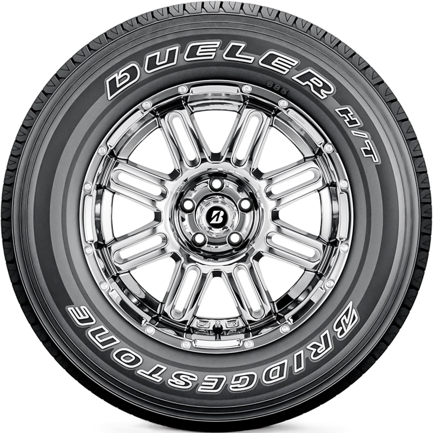 Bridgestone Dueler H/T 685 OVERVIEW The Bridgestone Dueler H/T 685 is a highway terrain all season tire manufactured for sport utility vehicles and light trucks. Bridgestone offers a 50,000 mile treadwear warranty with this model. The tire offers a safer year round performance. The optimized tread design with the added sipes, the larger road contact patch and the all season tire compound firmly grip the road surface in dry, wet and winter weather. The stronger tire compound does not lose its traction in colder temperatures, while the tread elements keep their firm grip even when driving on snow and ice. The four wide circumferential grooves, the smaller lateral grooves and the high siping density prevent hydroplaning by eliminating water and slush from below the tire’s footprint. The result is a more secure all weather traction. The model’s internal structure features two heavy duty steel belts and a 2 ply polyester construction. They enhance the tire’s strength and prevent it from deforming under the driving pressure affecting the tire. This also increases the model’s durability and with it its load carrying capability. The tire does not deform under the load pressure affecting the tire during the drive, which boosts the model’s load carrying and towing ability. The maintained tire shape allows the tire to closely follow the road surface in all weather, lowering the road vibrations felt in the vehicle’s cabin. The lower levels of vibrations guarantee a comfortable drive, while the stronger tire structure ensures a safer driving experience. The Dueler H/T 685 features an optimized tire footprint that maintains road contact at all times. The better road contact patch firmly grips the road surface, boosting the tire’s controllability. The steering responsiveness and the driving stability get upgraded as the ribbed tread design keeps its contact with the road. This stabilizes the tire against the driving pressure affecting it, while the steering becomes quick and precise in its responsiveness to the driver’s commands. The optimized footprint also evenly distributes the driving pressure along the tread area. The equally spread out forces of acceleration, cornering and braking prevent irregular wear formations across the tread area, extending the tread life and the tire’s usability. Not all tire sizes are suitable for all vehicle types. Please refer to the item specifications for accurate information about vehicle type fitment for this particular size. Manufacturers recommend changing tires every 10 years. As long as tires are properly stored before they are sold, the year of their manufacture will not shorten their service life.