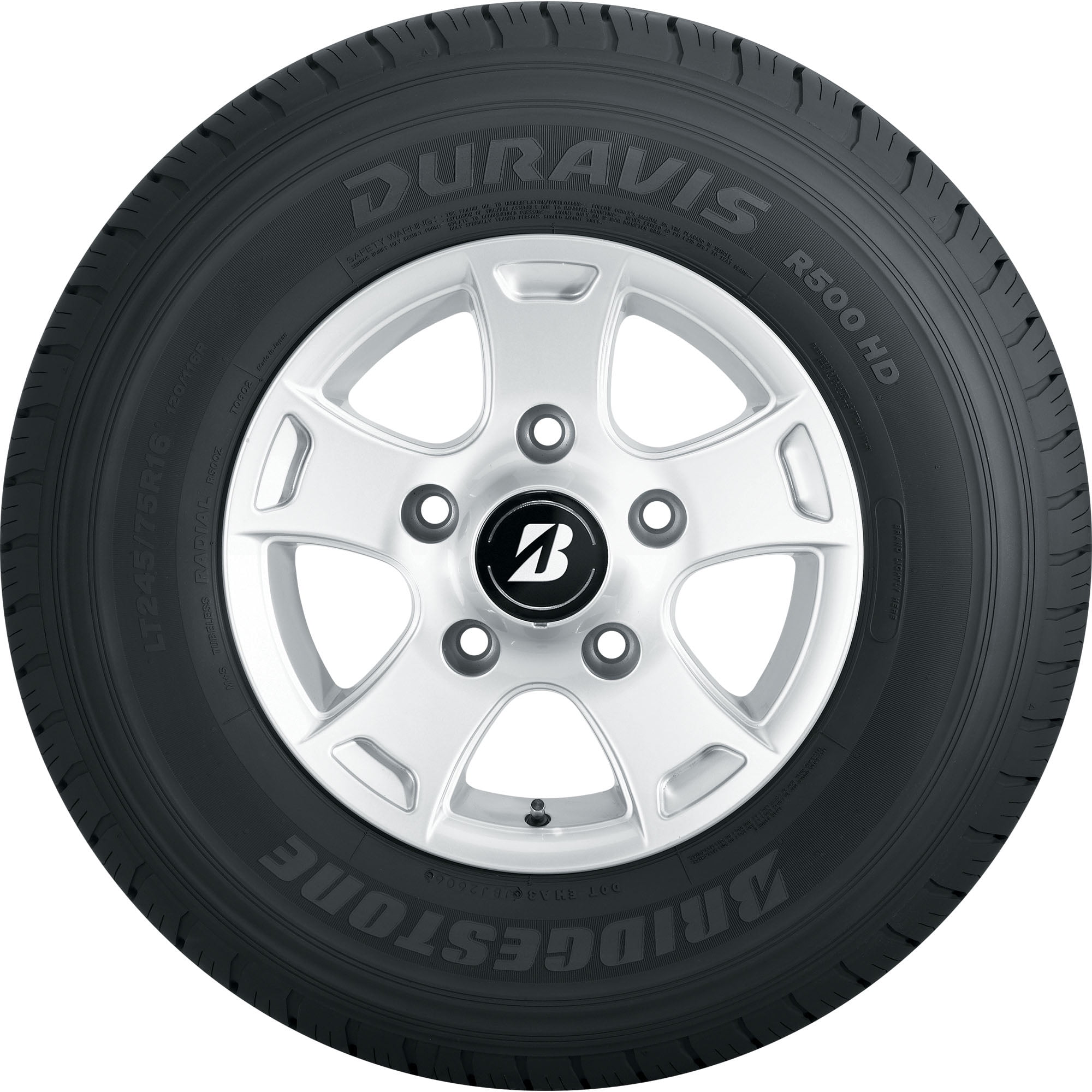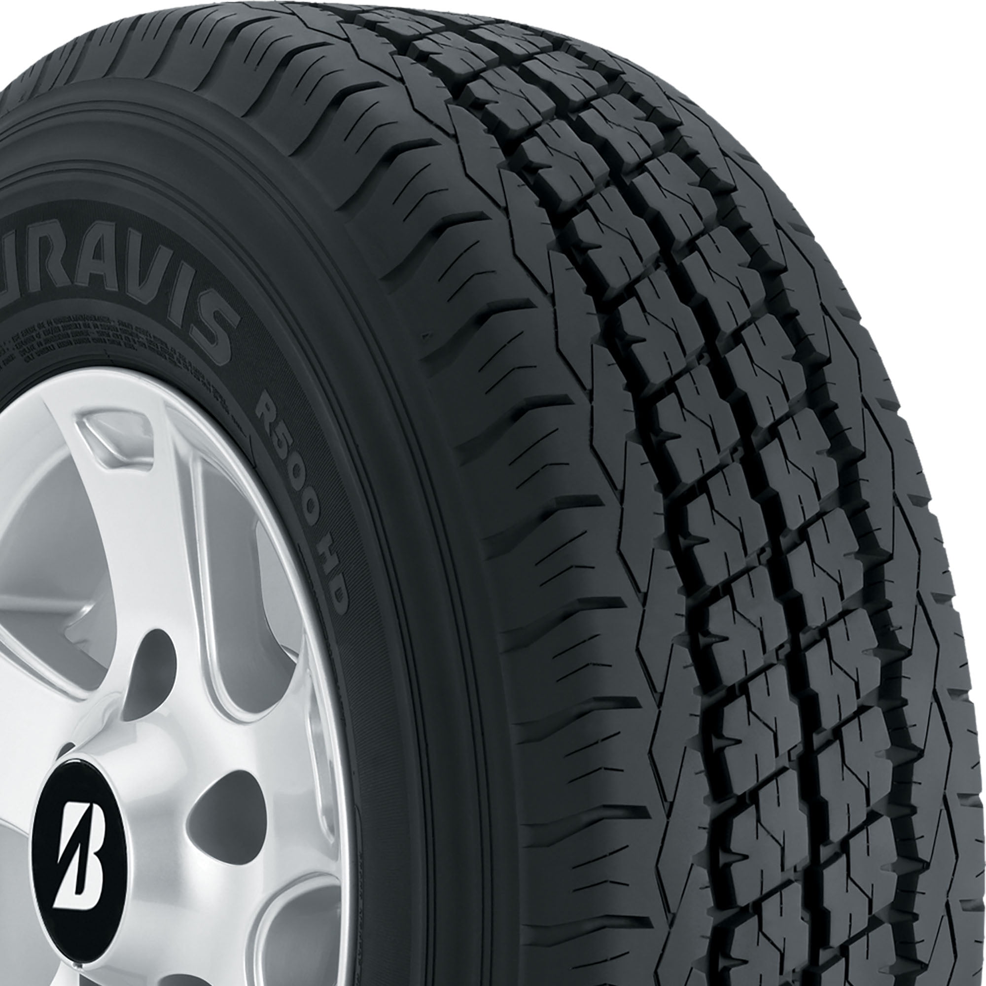 Bridgestone Duravis R500 HD LT265/70R17 121/118R E OVERVIEW Duravis R500 HD tires from Bridgestone are formulated to take the heavy abuse that comes with a grueling commercial workload. TBR compounds built into construction material provide extra durability for the casing, while stone rejector technology helps prevent damage from stone drilling into the casing and protect the inner belts. Dual sidewall protectors further enhance durability of R500 HD tires with added resistance to cuts, punctures and abrasions.
