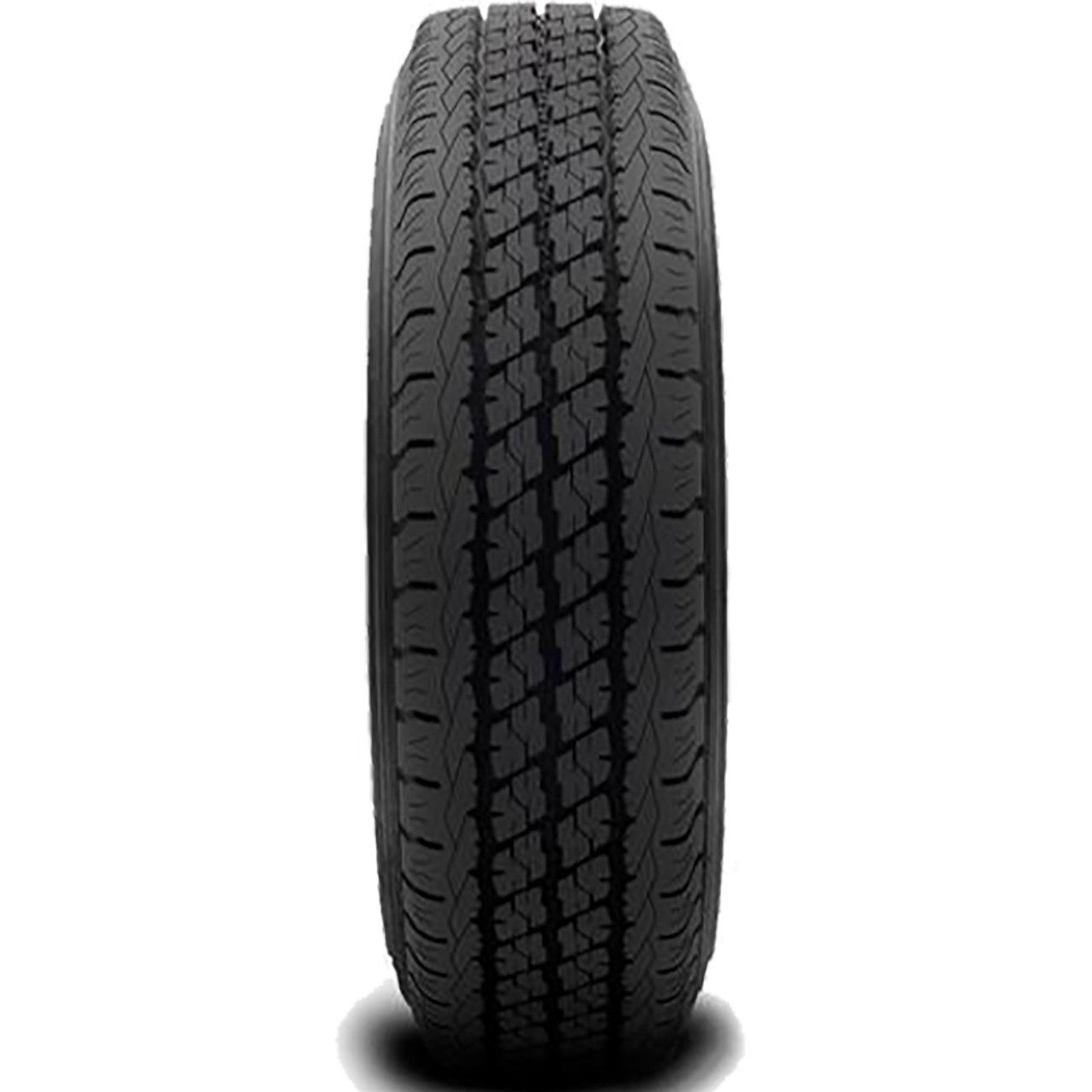 The Bridgestone Duravis R500 HD is a highway terrain, all season tire made for commercial vans. It has some trailer sizes too, which shouldn’t be mounted on light trucks.