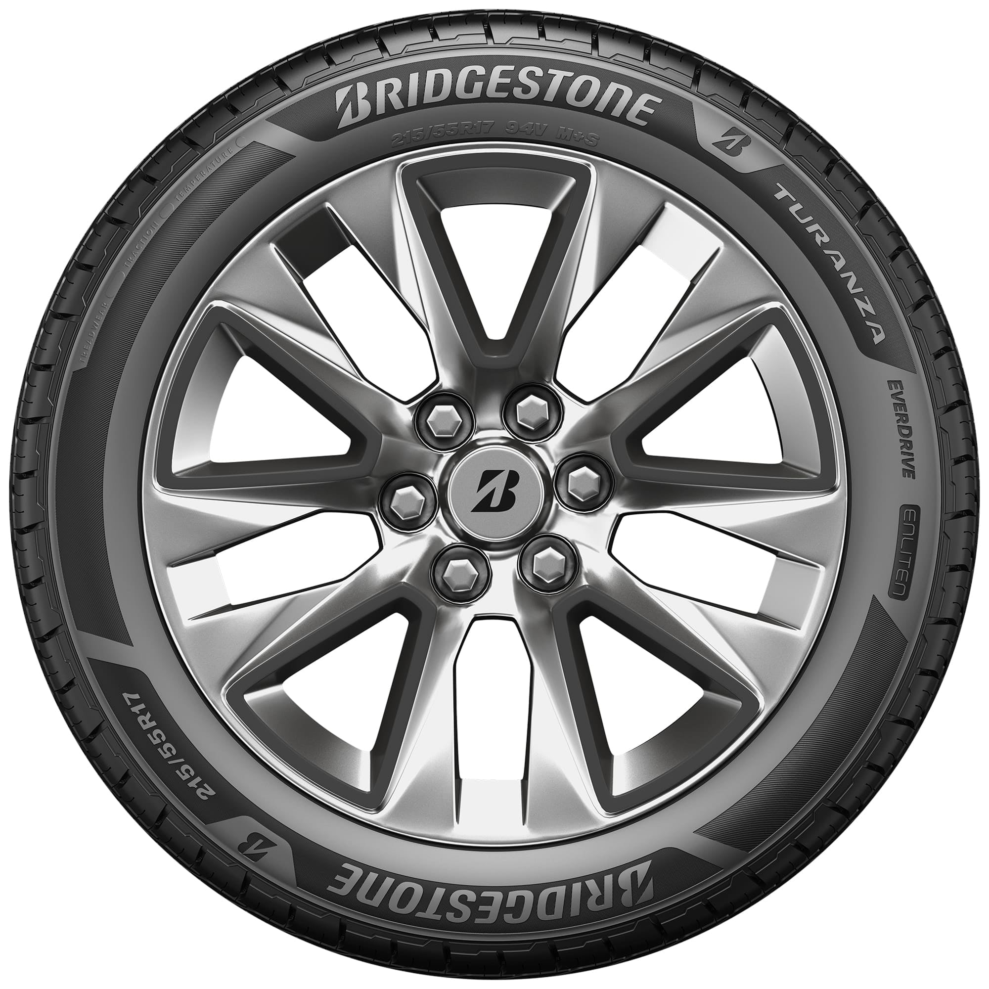 Bridgestone Turanza Everdrive 215/55R17 94V OVERVIEW The Bridgestone Turanza Everdrive is a touring tire crafted for minivans, sedans, and CUVs, delivering great longevity, a comfortable ride, and dependable traction and handling on paved roads. Its precision-cut tread pattern actively reduces noise and vibration, ensuring a quieter cabin. Additionally, full-depth 3D sipes and a high-density tread design work together to quickly clear water, reducing hydroplaning risk and enhancing wet performance.