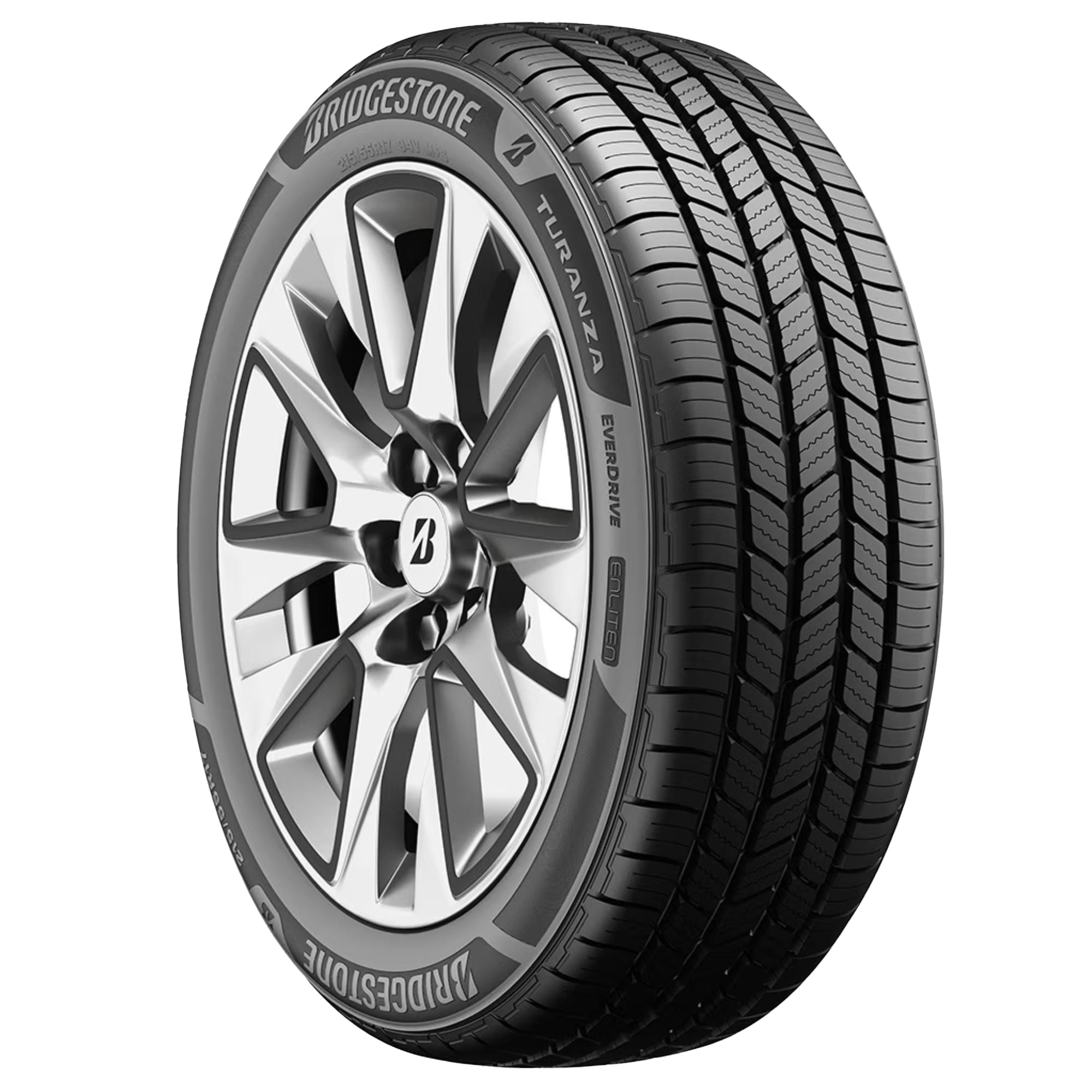 Bridgestone Turanza Everdrive 225/65R17 102H OVERVIEW The Bridgestone Turanza Everdrive is a touring tire crafted for minivans, sedans, and CUVs, delivering great longevity, a comfortable ride, and dependable traction and handling on paved roads. Its precision-cut tread pattern actively reduces noise and vibration, ensuring a quieter cabin. Additionally, full-depth 3D sipes and a high-density tread design work together to quickly clear water, reducing hydroplaning risk and enhancing wet performance.