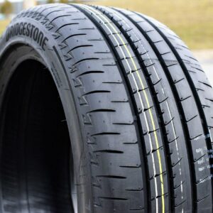 The Turanza T005A provides an enjoyable drive. The tread design and reinforced structure lower the road noise and vibration levels. The tread’s high-angle siping detail and variable pitch sequence decrease the road and tread pattern noise generated by dampening them before reaching the vehicle’s cabin. The sound frequency created by the variable pitch sequence negates all noise produced while the tires are in motion. The reinforced sidewalls enable the tire’s optimal road contact, which absorbs the shock of driving. As a result, the road vibrations are lowered and not felt in the vehicle’s cabin. This combination ensures a comfortable and quiet driving experience.