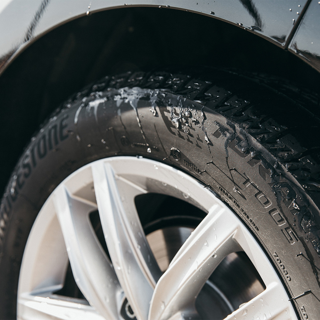 The tread pattern’s constant road contact evenly distributes the driving pressure across the tread area. This prevents irregular wear patterns from forming along the tread, and extends the tread life significantly. The constant contact also ensures that the tire is easy to control in summer conditions. The tire keeps to the road, which improves the steering responsiveness and driving stability. As a result, the Bridgestone Turanza T005 is quick and precise in its response to the driver’s instructions.