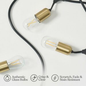 Brightech Glow LED String Lights – 48 Ft Commercial Grade Patio Lights with Beautiful Brass Accents – Outdoor Waterproof Globe Porch String Lights for Outside, Backyard, Gardens – 15 2W LED bulbs