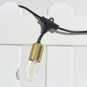 – Plug-in patio lights with LED dimmable bulbs and modern brass sockets will add a visual pop to your outdoor space