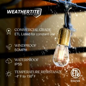 Elegant Outdoor LED String Lights: The gleaming brass accents on the sockets on this light strand can create a beautiful ambience in any outdoor space. The strand is 48 ft long and has 15, 1-watt, globe bulbs spaced 3 feet apart, and you can connect up to 20 strands together. These lightweight but bright porch LED string lights by Brightech are approved for residential and commercial lighting and stay cool even after being on for hours. Commercial Grade Weatherproof Patio String Lights: Brightech s Glow LED hanging string light has our WeatherTite technology and is capable of withstanding winds up to 50MPH, rain & snow. The rubberized but flexible heavy-duty cord makes it a versatile light for both indoor and outdoor use, and the core is UL listed. Confidently leave these lights on display year round. Easy Installation & Widely Used LED Patio Lights: Light up festivities with Brightech s Glow string lights- a stunning addition to outdoor decor and perfect for your balcony, terrace, or garden. These bistro lights are lightweight enough to be used indoors for elegant ambience in bedrooms, living rooms, wedding halls, and enclosed pergolas. No assembly is needed, you just plug in to play. You can string them straight, or wrap them around the gazebo, tent, and umbrella poles for unique installations.