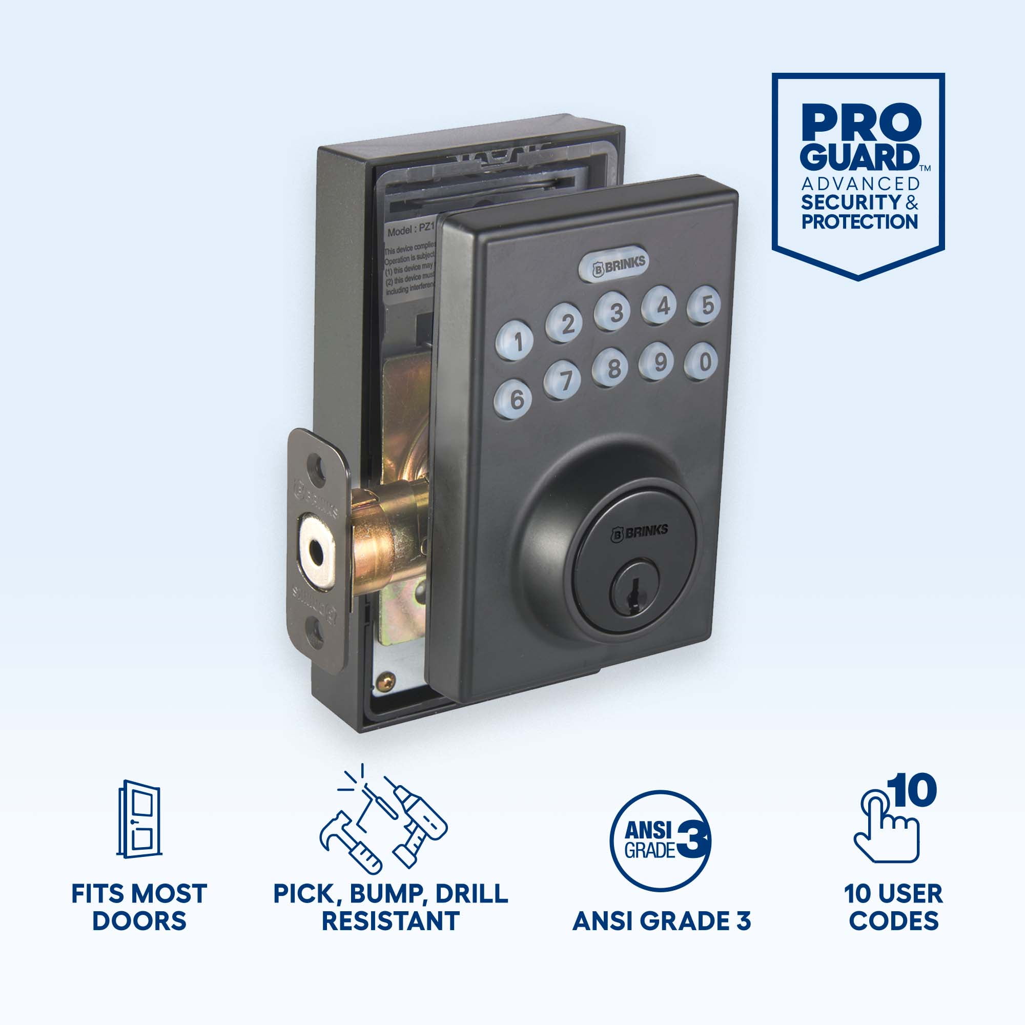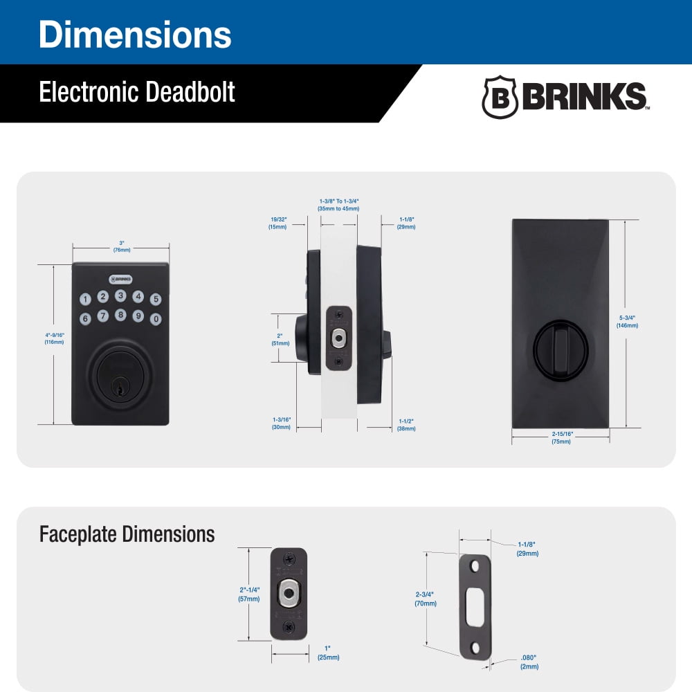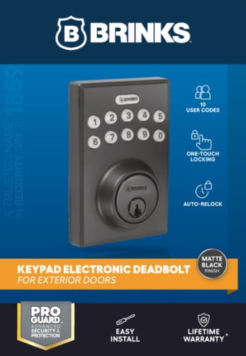 Brinks Electronic Keypad Single Cylinder Deadbolt Lock, Matte Black Finish