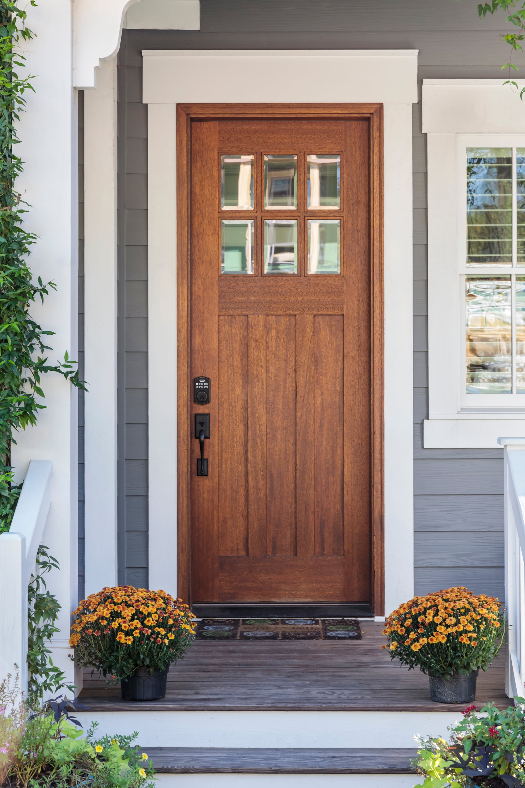 Exterior locking Add & delete codes using keypad 1-inch long deadbolt with steel anti-saw pin Fits standard doors 1-3/8″ to 2″ thick 2 keys included Convenient keypad access One touch locking Requires 4 AA (1.5V) alkaline batteries (not included)