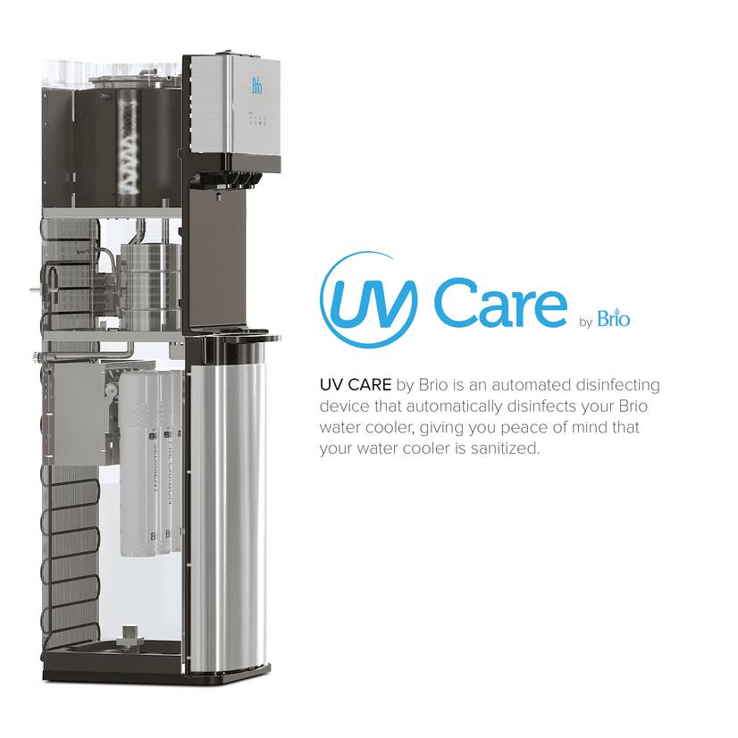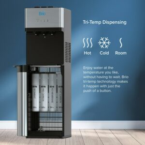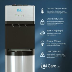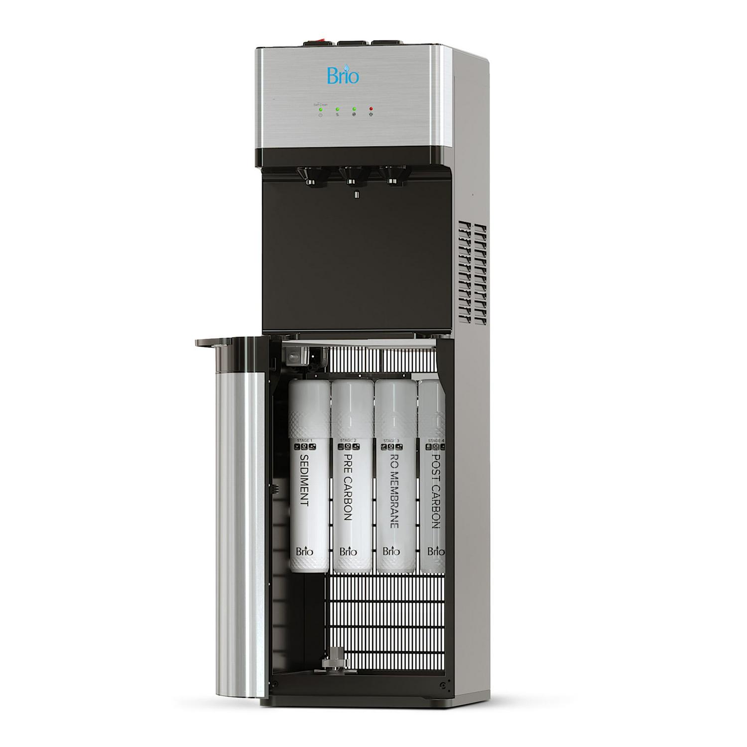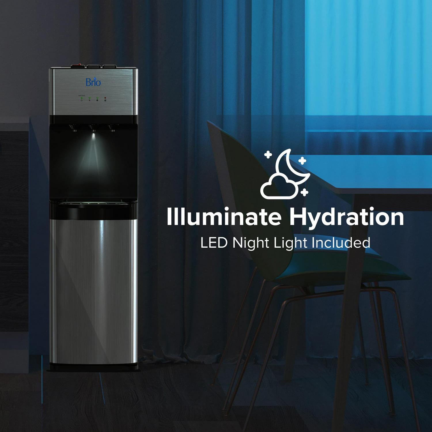 Revitalize with clean water from the Brio 500 series bottle-less water cooler. Refueling with fresh, clarified water has never been easier; simply connect your cooler to a water line in your home and begin drinking fresh, crisp water. Dispensing water has never been more convenient and easy. Four powerful filters eradicate harmful contaminants most commonly found in tap water to bring you clean drinking water. The illuminated display panel allows you to control the self-cleaning feature, a clock, nightlight, and child lock to ensure everyone s safety while utilizing the Brio cooler. Trust in a water system that leads in innovation and health.