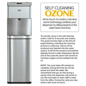 - Self- cleaning ozone: minimal maintenance with the water cooler that utilizes a self-cleaning feature
