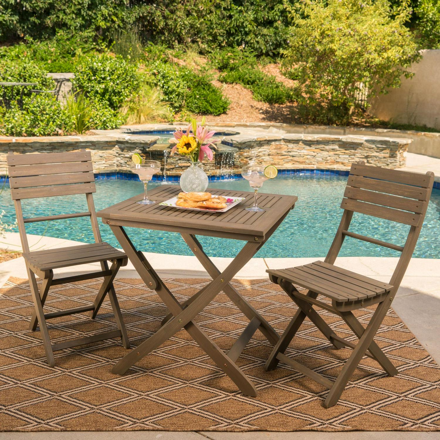 Bristle Outdoor 3 Piece Foldable Acacia Wood Bistro Set, Grey