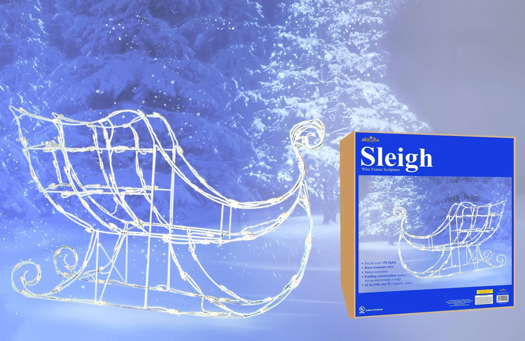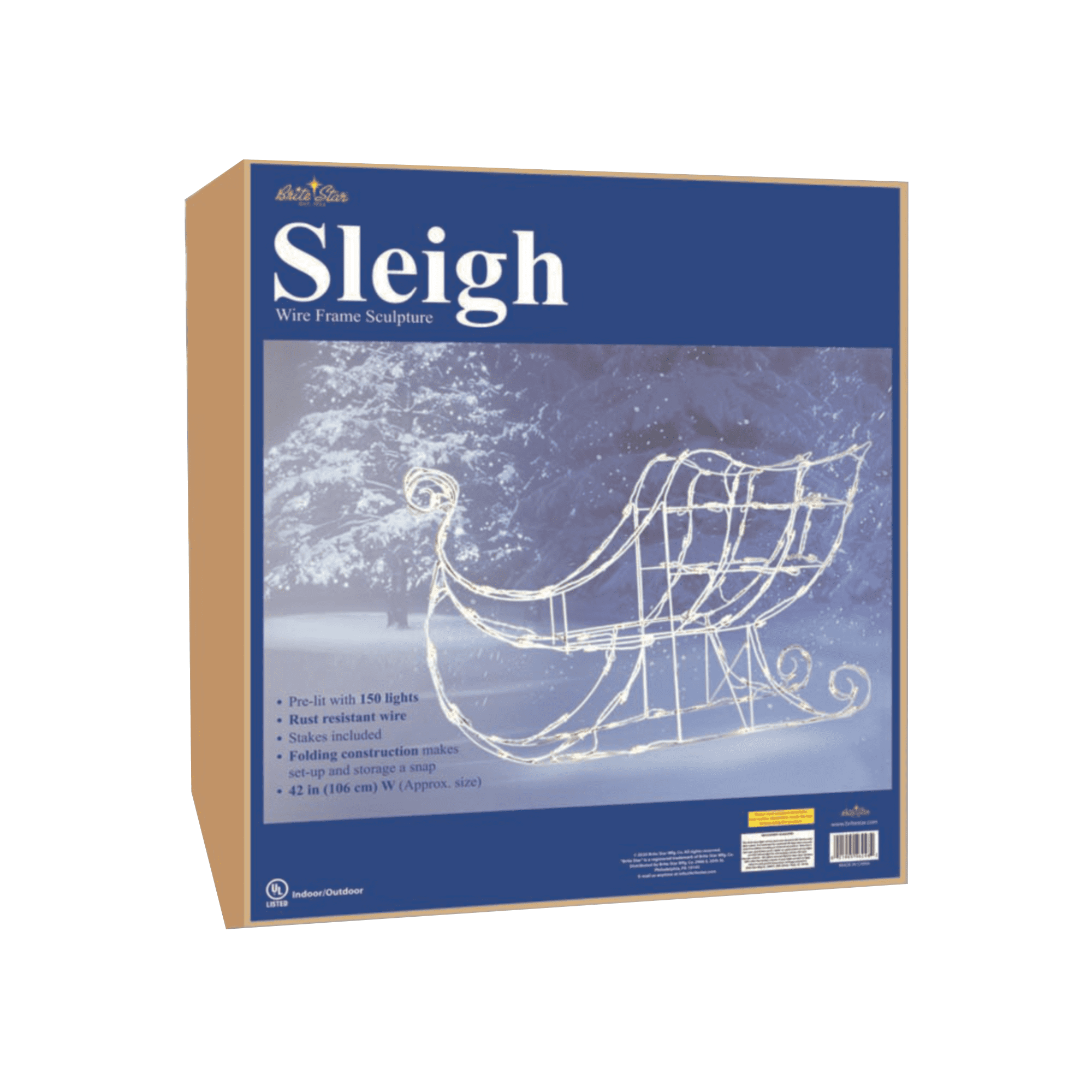 Christmas Outdoor Decorations – Brighten up your yard or garden with Brite Star’s 42 inch width outdoor Santa Sleigh Christmas decoration. Comes with replacement bulbs, a spare fuse and ground stakes. Contains 1 plug with end connector allowing you to stack multiple sets of lights. These decorations are perfect for the festive season and will make your house stand out in your neighborhood. Long-Lasting Lights – The wire frame sculpture is pre-lit with 105 lights. These lights are energy-efficient and long-lasting, ensuring that your decorations will shine brightly throughout the holiday season. All the clips and lightset arrive fully assembled. Illuminate Your Yard – The Santa Sleigh is pre-lit with 105 White lights and a clear white wire that blends seamlessly with your outdoor holiday decorations. Its patented 3D construction offers a stunning visual appeal, making it a standout piece in your Christmas outdoor decorations. Perfect for your garden, patio, or front yard, it’s a festive way to brighten up your home this holiday season.