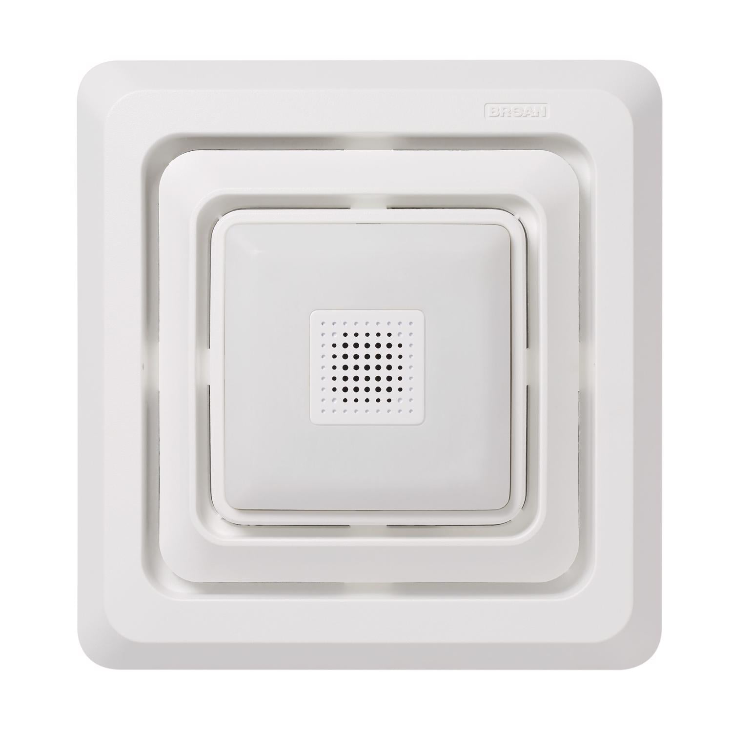 Broan sensonic quick installation bathroom exhaust fan grille with an LED light and speaker is a unique lighted bathroom ventilation fan grille which allows you to upgrade your non-lighted ventilation fan or tired incandescent fan/light into a sleek fan/light with bright, efficient LED lighting and bluetooth speaker capability quickly and easily. This lighted grille is designed with fewer ventilation slots to stay clean longer and is a crisp, bright white to coordinate with today’s popular ceiling paint colors.