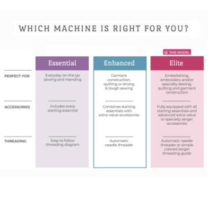 – High Performance: A high performance 3 or 4 thread serger that can handle multiple layers of denim and other thick materials
