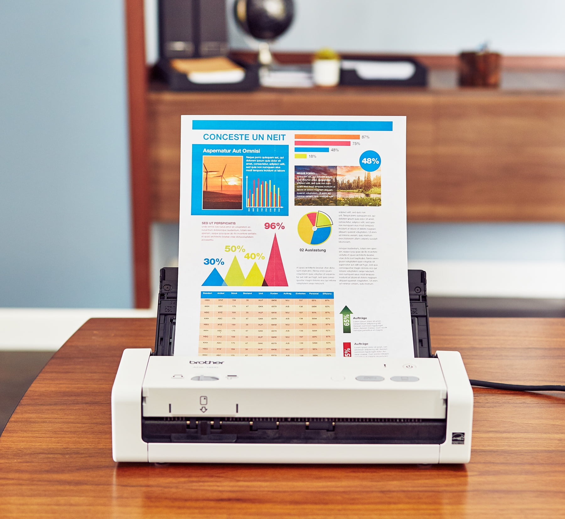 The Brother ADS-1200 Compact Desktop Scanner is ideally suited for small office/home office professionals with its compact design and simple workflow applications. The ADS-1200 offers single-pass, duplex, color scan speeds of up to 25ppm (1), 20-page capacity auto document feeder for scanning documents, receipts, photos and more plus dedicated card slot for scanning plastic cards. Power the ADS-1200 through a USB 3.0 connection to your laptop or PC (6) to make it highly portable. Mass Storage Device recognition lets you scan and retrieve files without installing special software on the connected PC. Scan to multiple destinations including File (2), OCR (2), Email and USB flash memory drive (3). The ADS-1200W is compatible with Windows, Mac® and Linux and supports TWAIN, WIA, ICA and SANE drivers (4). The scanner software suite provides document management and OCR software for easy document storage and retrieval (5). Image optimization lets you enhance scans for optimum imaging. Includes a one-year limited warranty and free product lifetime online, call or live chat support.