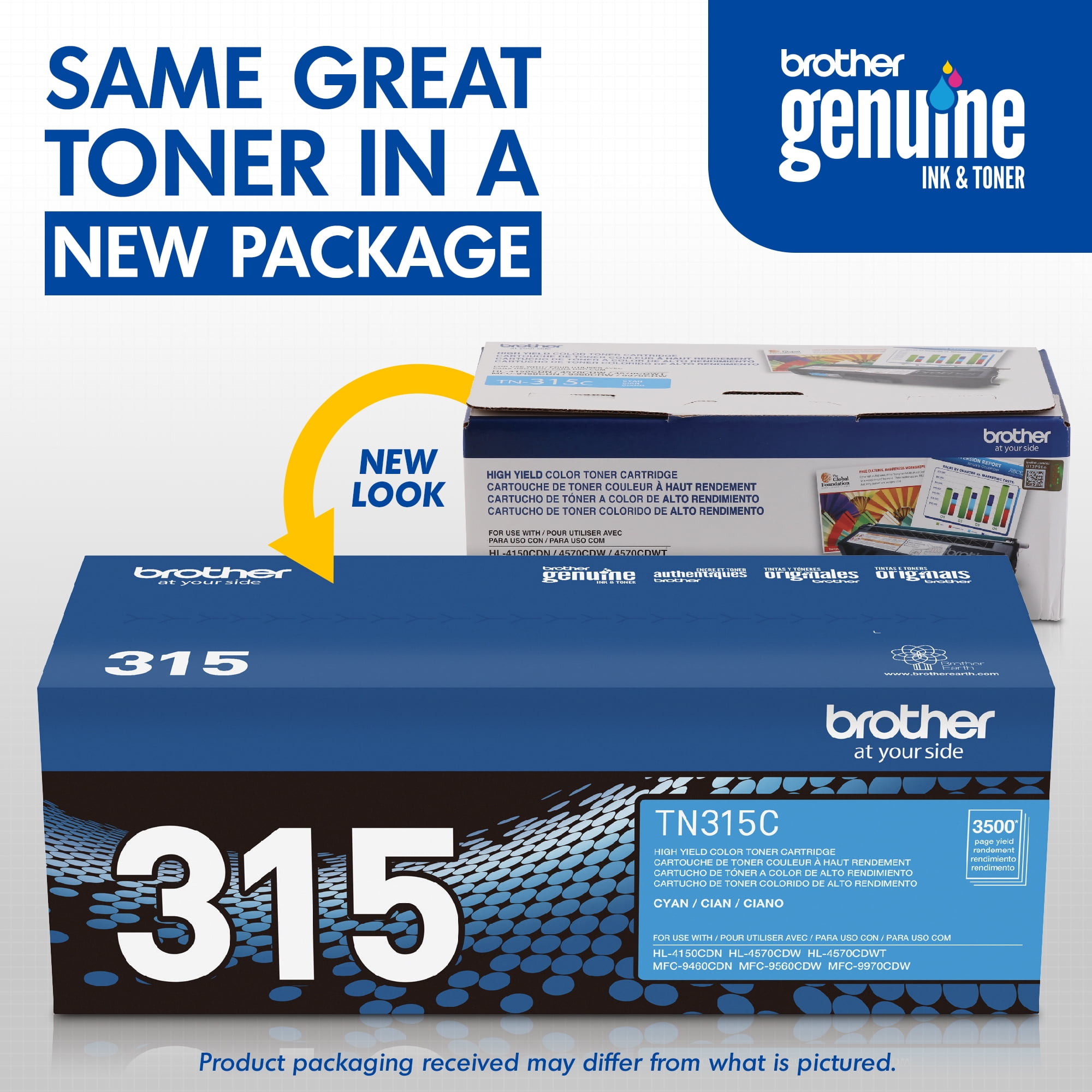 Brother Genuine TN315C High Yield Cyan Toner Cartridge. Professional color laser print quality you can consistently rely on for 3,500 pages*. Intelligently engineered to work in seamless unison with your Brother printer. Brother Genuine toner produces rich, vibrant prints that withstand the test of time. Brother offers an environmentally responsible way for customers to dispose of Brother Genuine cartridges.