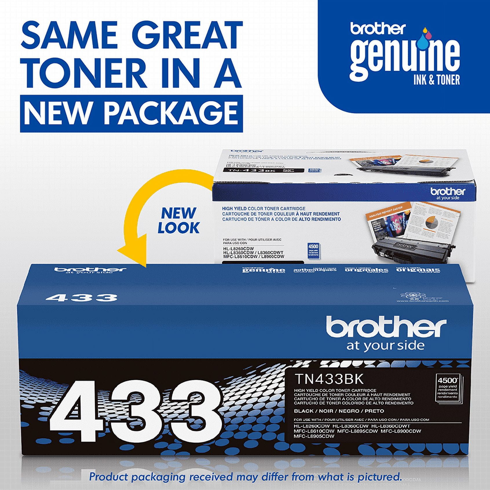 Brother Genuine High-Yield Toner Cartridge TN433BK delivers crisp, professional laser output with 4,500 page yield*. All Brother Genuine supplies are designed as part of a complete intelligent printing system to provide superior quality and reliability. Brother Genuine toner is precisely balanced for even flow and consistent toner distribution. Use only Brother Genuine toner cartridges for reliable results and enjoy ongoing improvements and technical changes, which regularly occur throughout the hardware lifecycle. Brother offers an environmentally responsible way for customers to dispose of their Brother branded products for no cost at end of life. Visit for more information
