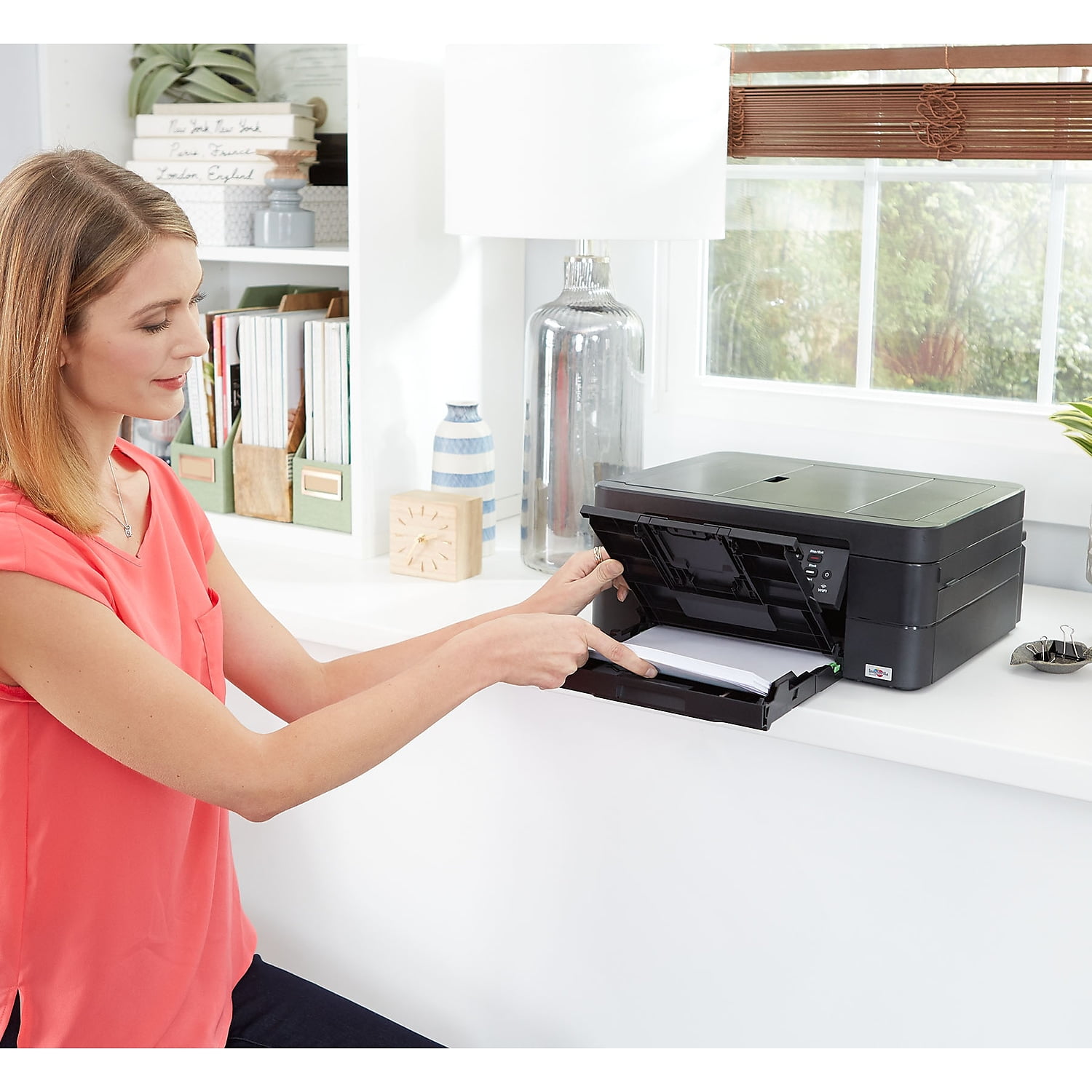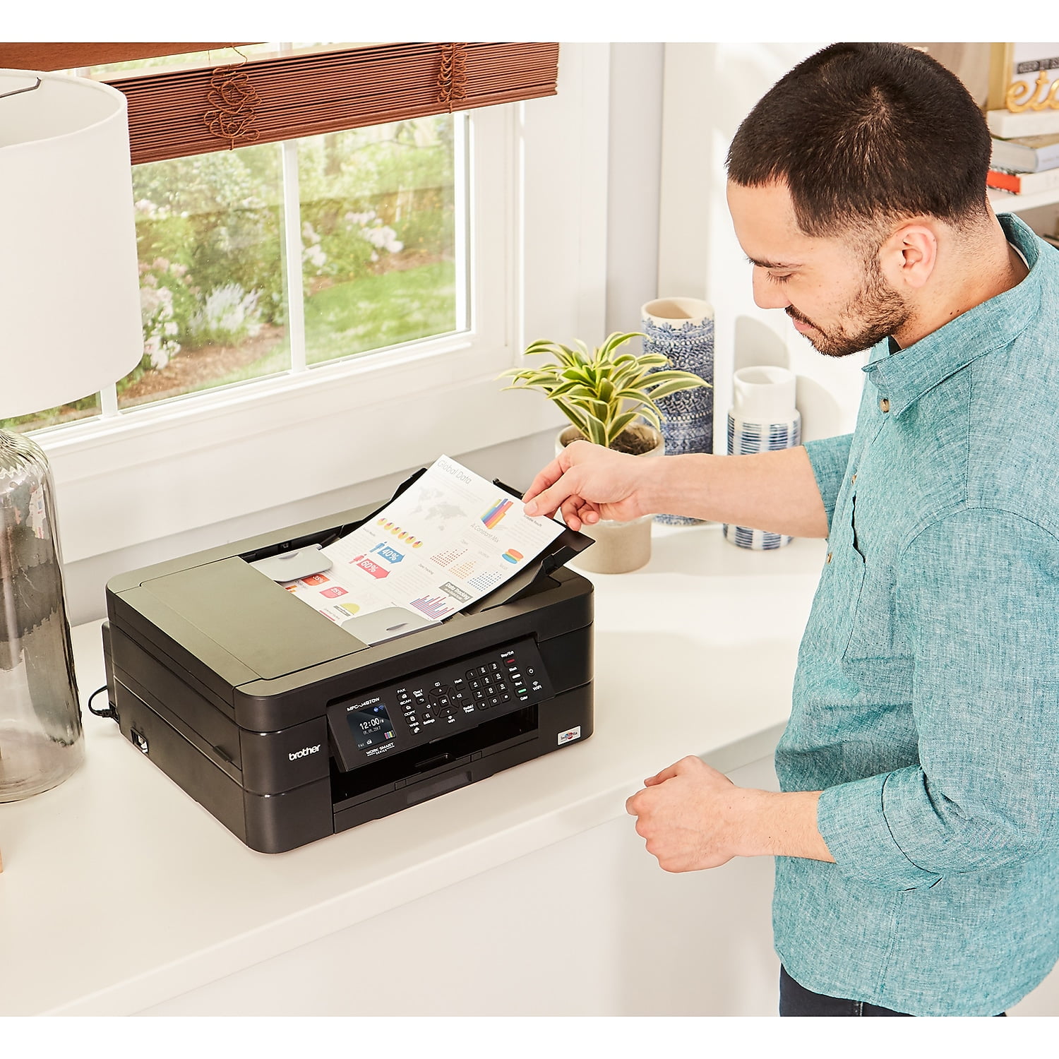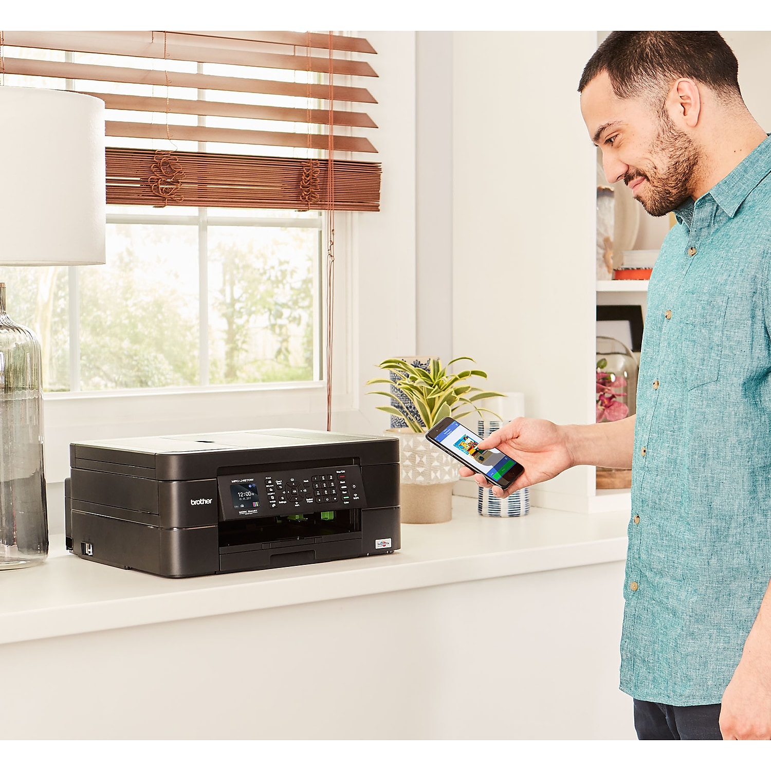 The Brother Work Smart MFC-J497DW Printer is easy to connect, compact, affordable and loaded with features and functionality to help boost productivity in your home, home office, dorm room or small office. This wireless color inkjet all-in-one delivers high-quality output, lets you reliably print, copy, scan and fax and enables wireless mobile device printing from your desktop, laptop, smartphone or tablet. Use the automatic document feeder and 100-sheet capacity paper tray for generous output without constant monitoring and help save paper with automatic duplex (2-sided) printing. Cloud connectivity lets you print-from and scan-to popular Cloud services directly from the printer.