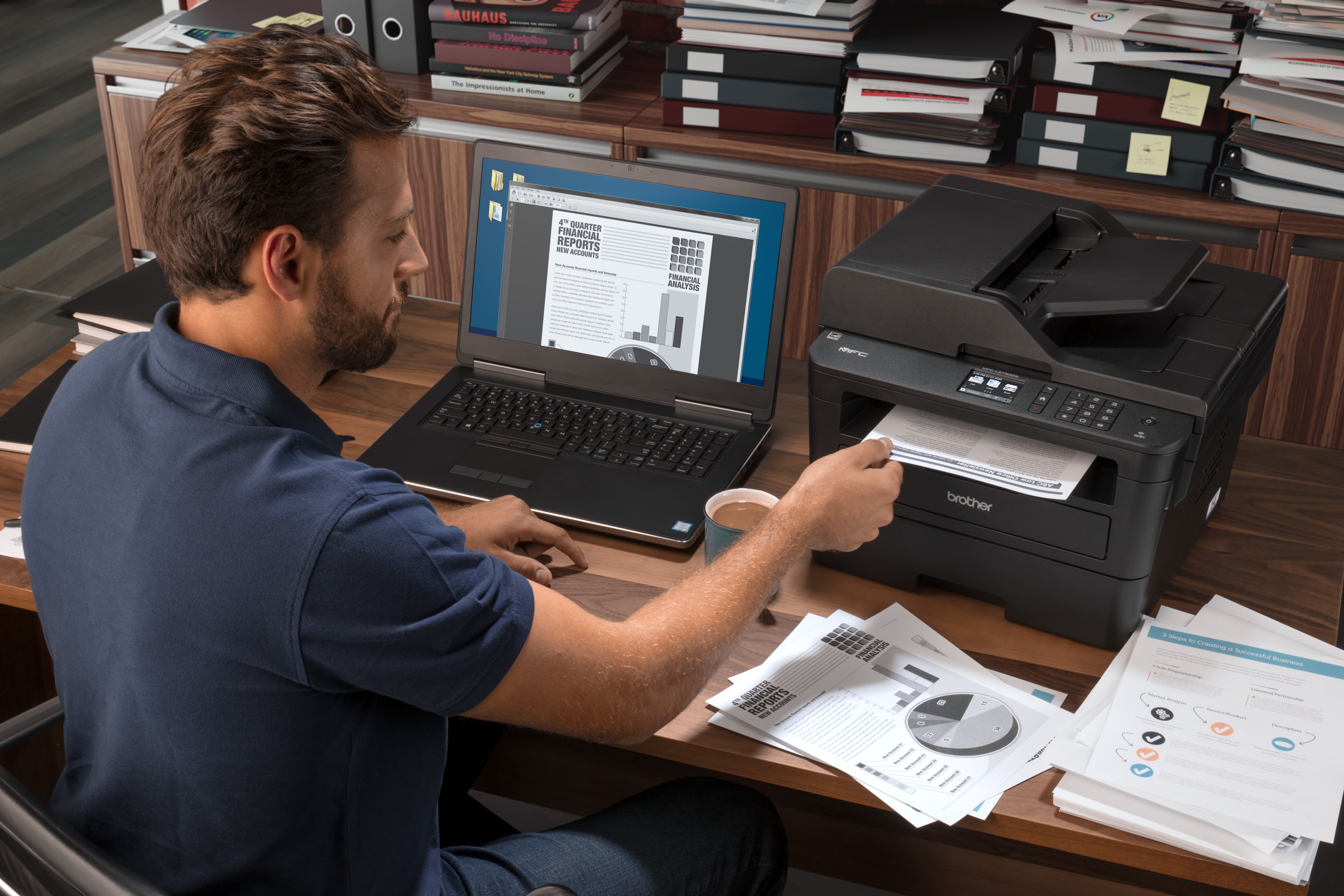 Print more, wait less, get more done. Delivers fast print speeds of up to 36 pages per minute(1) for increased efficiency so you can print more, wait less and have more time to focus on your business. Multiple printing options meet a variety of needs. The generous 250-sheet capacity adjustable paper tray easily handles letter and legal size paper and helps improve efficiency with less paper refills. The manual feed slot offers professional prints on a variety of papers and sizes including card stock, envelopes and more. Streamline your document workflows. Use the 2.7” color touchscreen to easily access Brother Cloud Apps; a free suite of innovative, cloud-based applications designed to meet your document imaging needs, including Scan-to-Office, which converts a hard copy document into an editable text file – Word, Excel, or PowerPoint(3). Mobile printing made simple. Enjoy easy, reliable, wireless printing from your desktop, laptop, smartphone and tablet(2) so you can always keep up with your business from virtually anywhere. Intuitive Cloud connection. Print-from and scan-to popular cloud services directly from the 2.7” color touchscreen including Dropbox, Google Drive, Evernote, OneNote and more(3). Help save time by creating custom shortcuts right on the touchscreen for your most used features and functions. Time saving document feeder is engineered for increased productivity. The 50-sheet capacity automatic document feeder helps save time by enabling you to quickly and easily copy, scan and fax multiple page documents. Loaded with cost saving features. Automatic duplex (2-sided) printing helps save on paper costs while toner save mode can helps save on toner costs. Brother Genuine toner helps provide genuine savings. Brother Genuine high-yield replacement toner delivers up to two times more prints than standard-yield replacement toner cartridges and helps lower your printing costs(4). Compact, yet durable and dependable design is perfect for busy offices. Sturdy and robust construction ensures your laser all-in-one printer will keep up with your busy schedule. Compact desk footprint saves on space requirements. At your side support. Features a 1-Year Limited Warranty and free online, call or live chat support for the life of your product. Connect and print your way. Works with Alexa Print for voice activated printing or choose from versatile connection options with built-in wireless or connect locally to a single computer via its USB interface. Disclaimers: (1)Based on one-sided printing. Change from default setting required. (2).Requires connection to a wireless network. (3) Requires an Internet connection and an account with desired service. (4) TN-760 High-Yield vs. TN-730 Standard-Yield. Up to two times more prints and lower printing costs based on yields and MSRP. Standard-yield and high-yield cartridges sold separately.