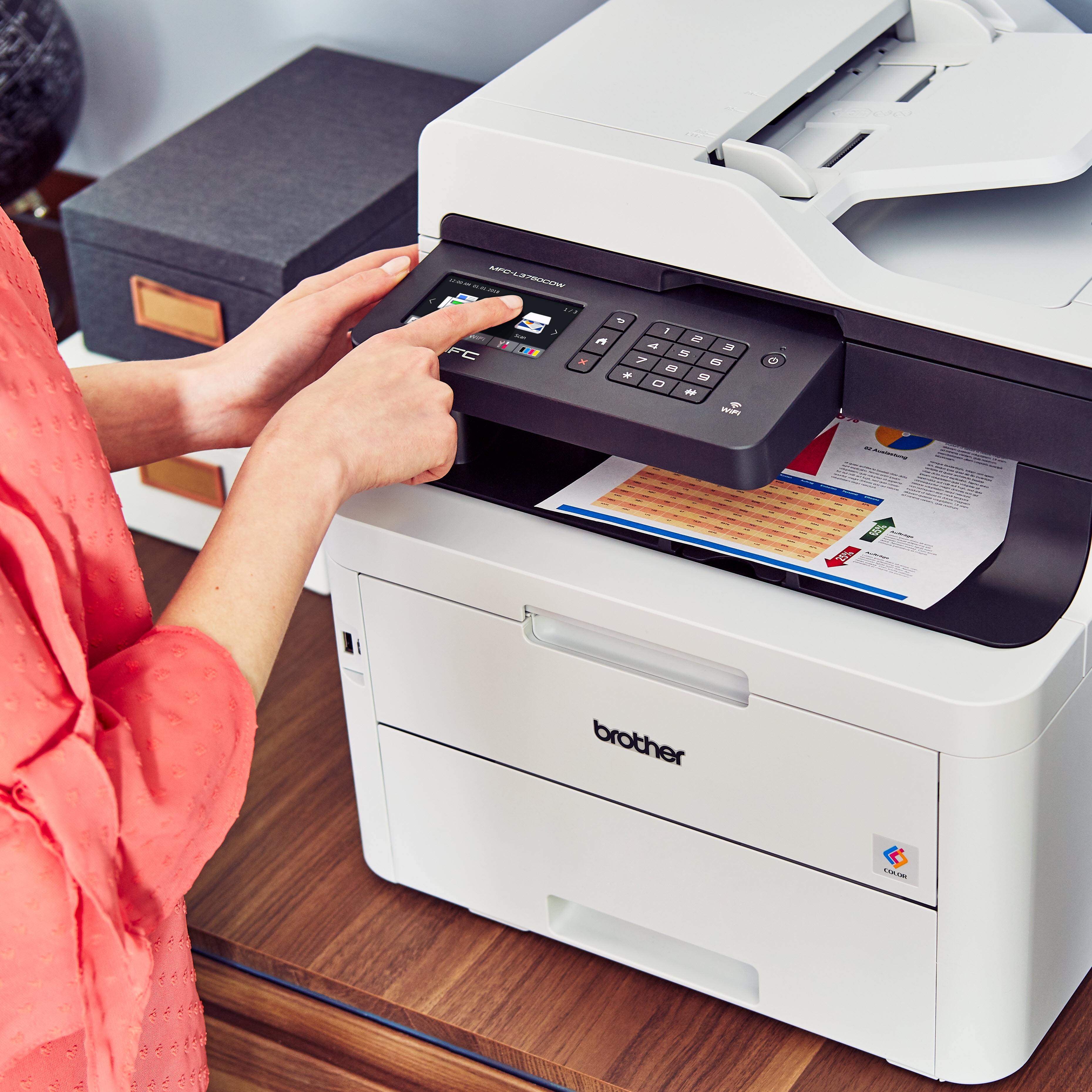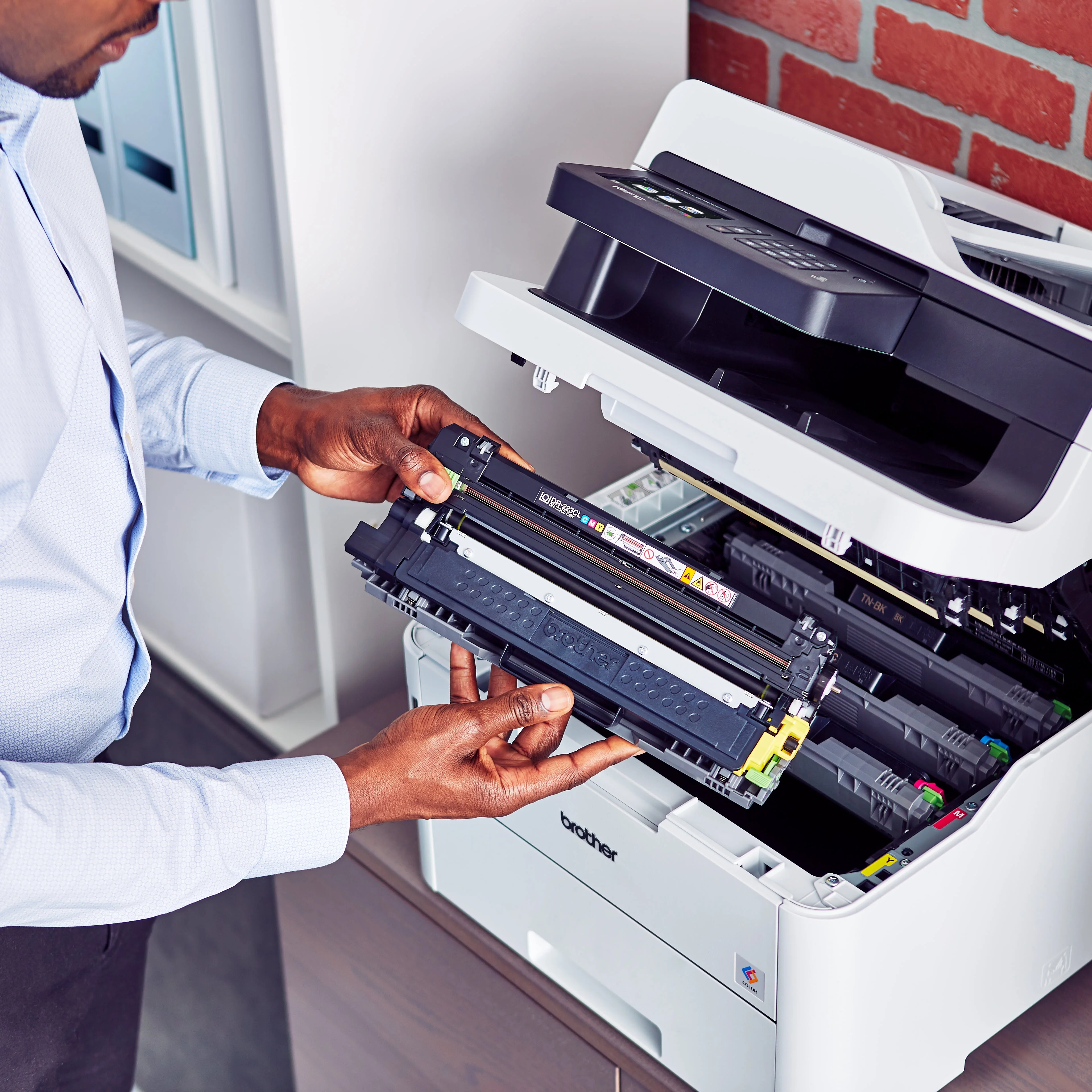 The reliable Brother MFC-L3750CDW delivers full featured performance including print, copy, scan and fax for busy home and small offices looking for laser printer performance. The up to 50-sheet automatic document feeder enables multi-page copying, scanning and faxing plus fast print speeds of up to 25 pages per minute. The manual feed slot accommodates varied printing needs and can handle a variety of paper types and sizes including card stock, envelopes and more. The 250-sheet capacity adjustable paper tray helps improve efficiency with fewer refills and handles letter or legal sized paper. Connect with versatile options including built-in wireless, Ethernet or USB interfaces and print wirelessly from mobile devices.1 Save time by creating custom shortcuts on the 3.7” color touchscreen which also enables you directly print-from and scan-to popular cloud apps including Dropbox, Google Drive™, Evernote, OneNote and more.2 Brother Genuine high-yield replacement toner cartridges help lower printing costs. Comes with a 1-year limited warranty and free online, call or live chat support for the life of your product.