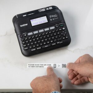 Combining organizational aptitude with creative customization and a wealth of dynamic features, the Brother P-touch PT-D460BTVP Business Expert Connected Label Maker keeps active businesses thriving. So much more than an ordinary label maker, it includes Brother P-Touch Editor software1 and the iPrint&Label app, providing users the opportunity to easily create and print labels from almost anywhere. Access a wide selection of pre-designed templates or create your own custom labels by adding frames, symbols or barcodes using intuitive built-in drawing tools. Plus, advanced Bluetooth connectivity allows multiple users to access the same label maker from their own computer or smart device whenever they need to! There are so many ways the Brother P-touch PT-D460BTVP can help get your business organized, optimized and efficient. Print product labels, merchandise with QR codes, track inventory with barcodes, proudly add your company logo on products, displays, or shipping containers, identify assets, label, and seal confidential file boxes with tamper-proof tape, and add or revise retail pricing. You ll be amazed by the impact this multi-tasking label maker will make to overall efficiency. Loaded with the P-touch features you love including a QWERTY keyboard, easy one-touch formatting keys, and a large 20-character x 2-line backlit screen – so you can avoid errors and preview labels before they re printed. Choose from a selection of 16 fonts, 15 font styles, 140 frames, and 800 symbols. Store up to 70 frequently used labels for quick reprinting. Includes One 4m Black Print on White Sample Label Tape ~3/4 (18mm), AC Adapter, and USB cable.